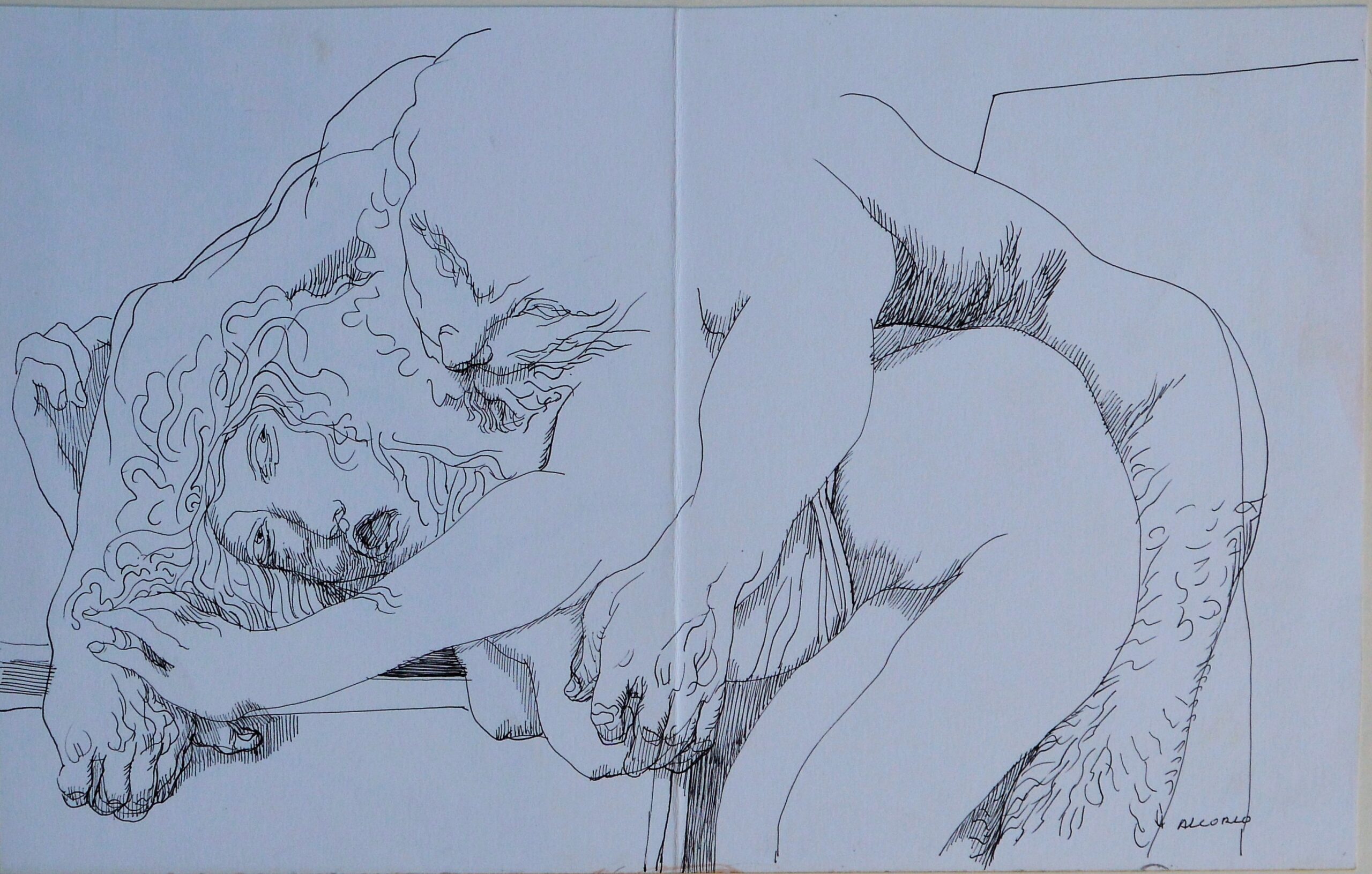 Manuel Alcorlo, Violación mitológica, dibujo tinta papel, enmarcado, dibujo 21×33 cms. y marco 38,50×50 cms.
