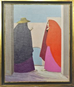Manuel de las Casas, Encuentro, pintura oleo sobre lienzo, enmarcación artesanal, pintura 55×46 cms. y marco 64×56 cms.