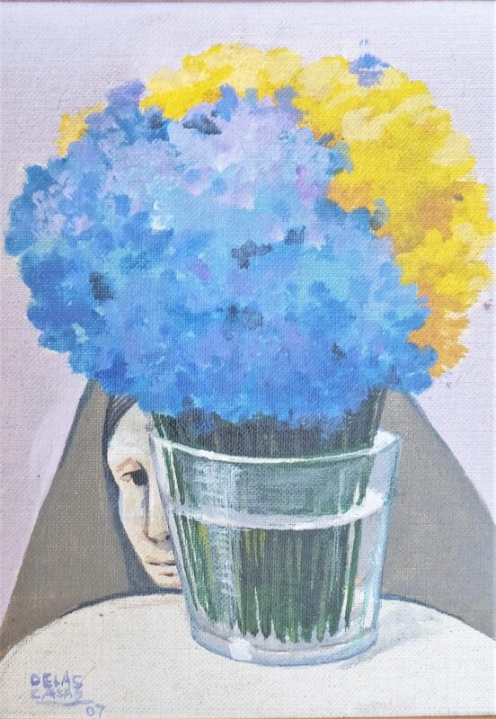 Manuel de las Casas, Vaso con flores, pintura oleo sobre lienzo, con marco artesanal, pintura 22×16 cms. y marco 38×32 cms.