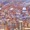 Manuel Terán – «Santiago, San Cristóbal desde Providencia, ecléctico tributo a los genios, Roberto Matta» pintura oleo sobre tabla, enmarcado
