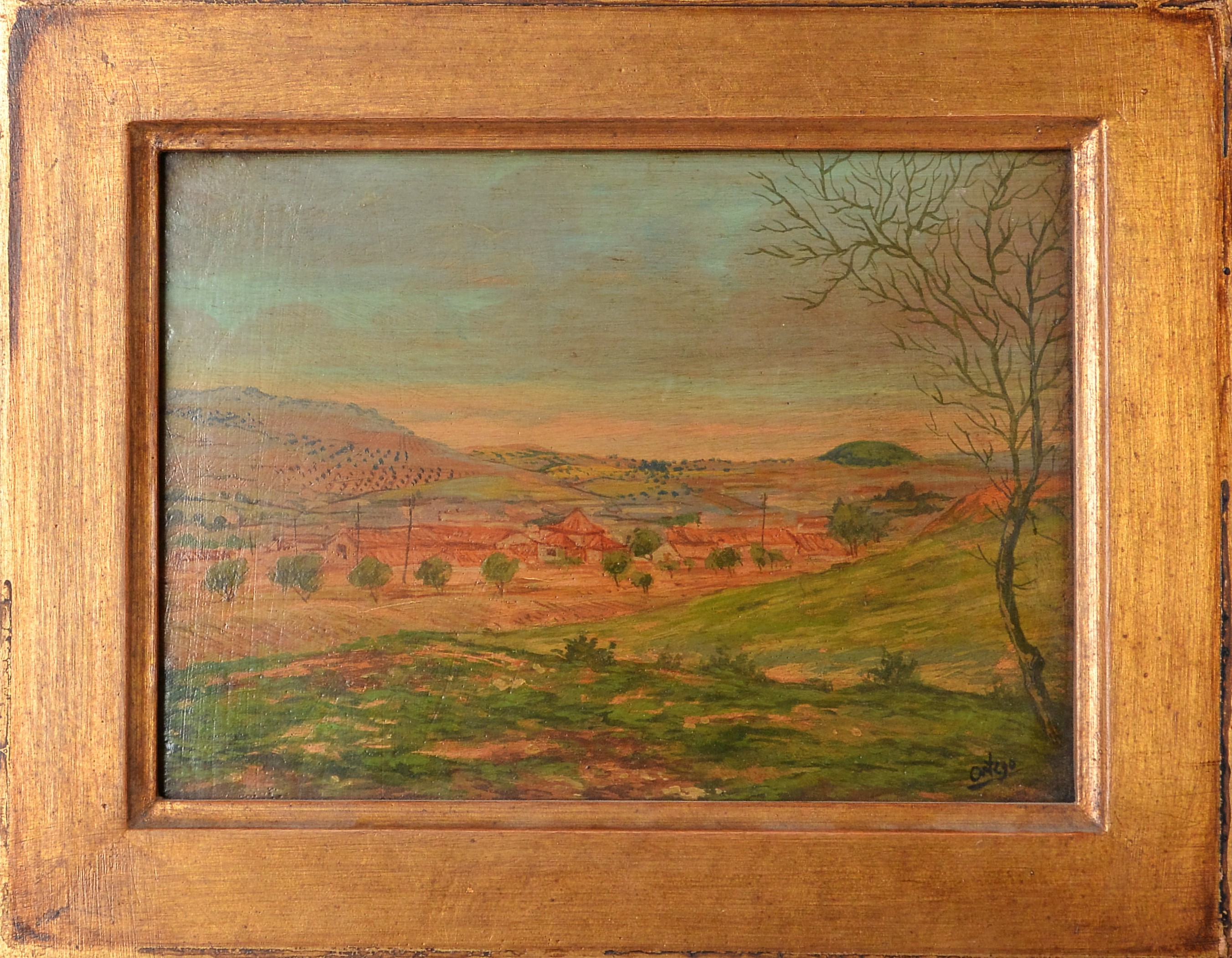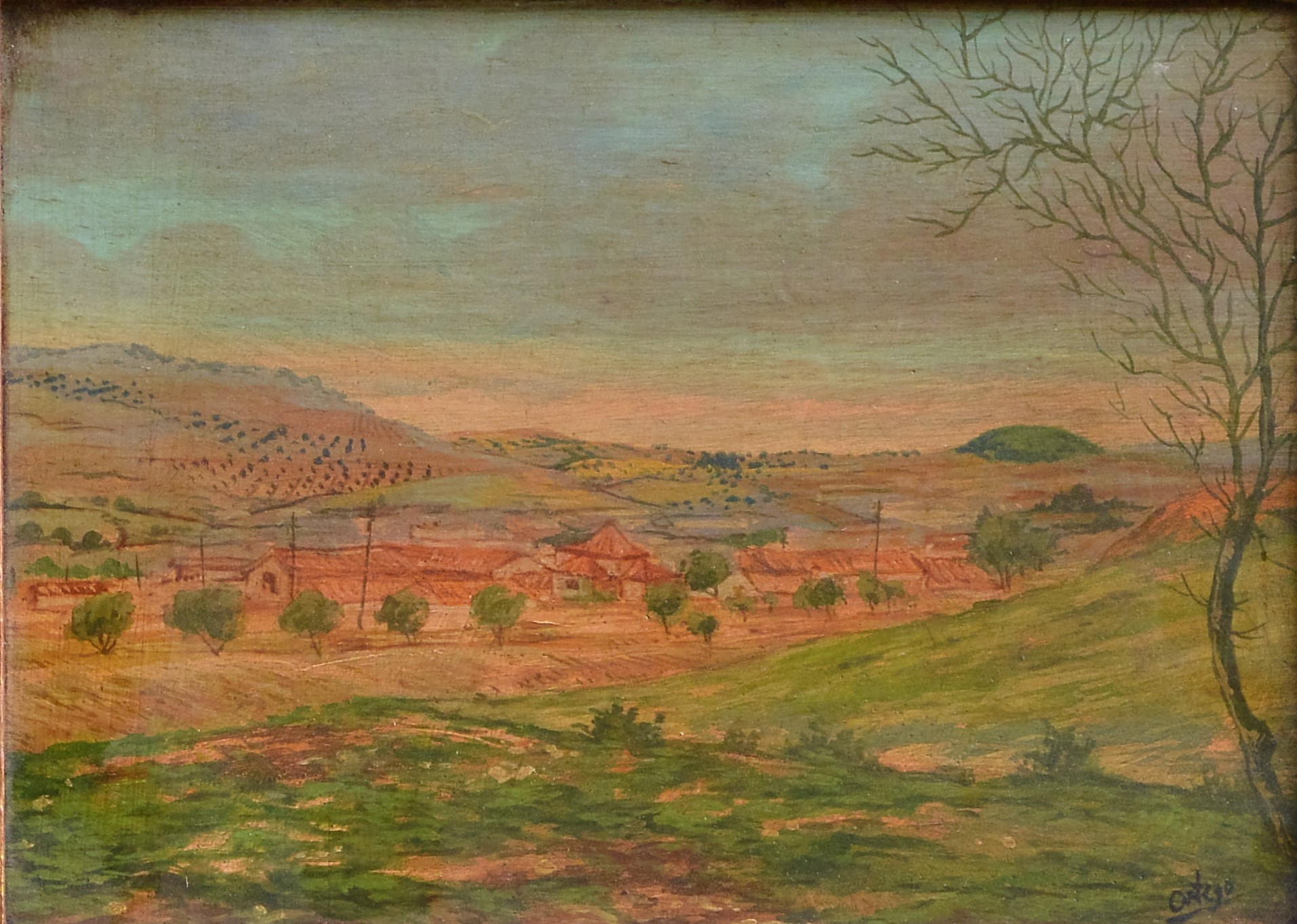 Manuel Ortego, Paisaje, pintura oleo tabla, enmarcado, pintura 15×20 cms. y marco 29×19 cms. Marco incluido