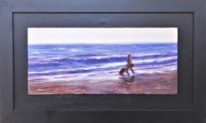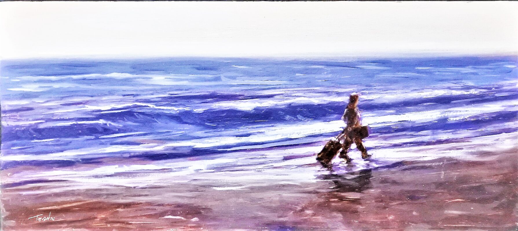 Manuel Terán, Caminando al borde del mar, pintura oleo sobre tabla, enmarcado, pintura 20×44,50 cms. y marco 37×61,50 cms.