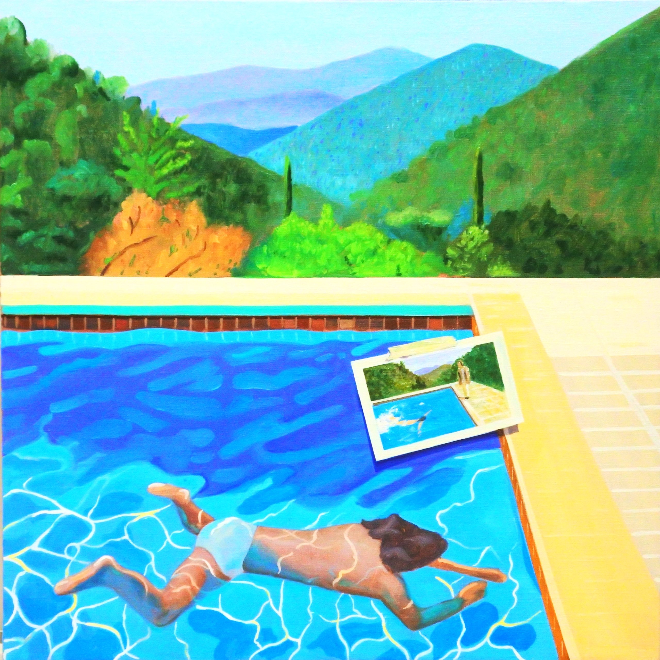 Manuel Terán, Ecléctico tributo a los genios, David Hockney, pintura oleo sobre lienzo, 60×60 cms