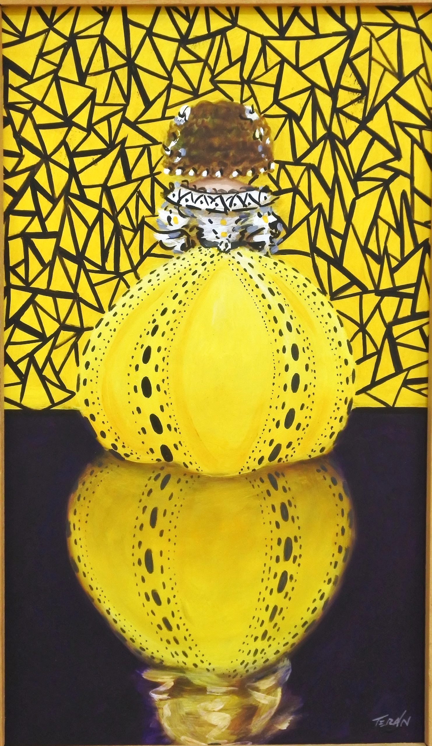 Manuel Terán, Kusama y Velázquez, serie tributo a los genios, pintura original oleo sobre tabla, enmarcado, pintura 50×30 cms. y marco 64×44 cms.