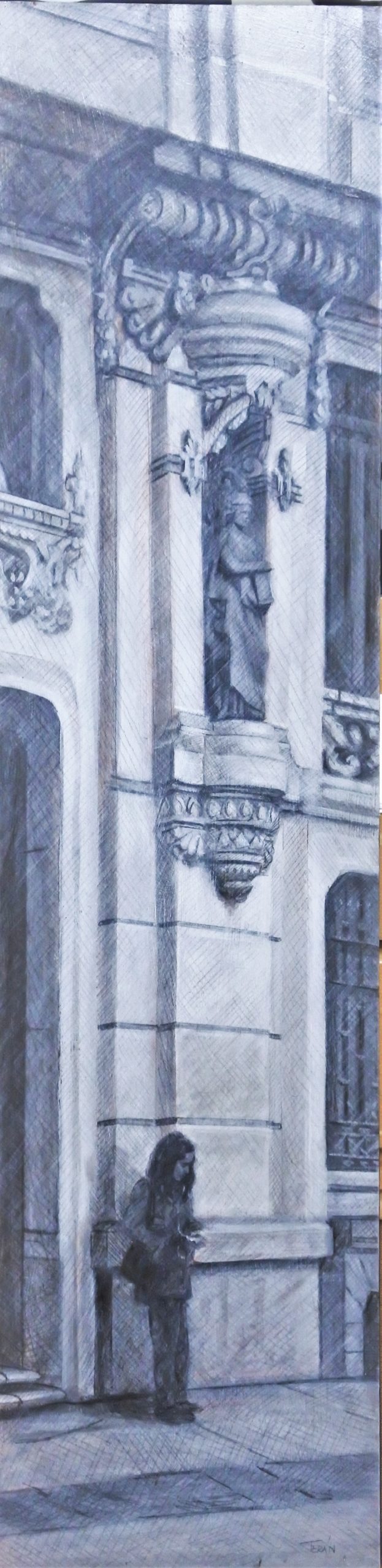Manuel Terán, Madrid, Plaza de Canalejas I, pintura acrílico y grafito sobre tabla, 80×20 cms. Catalogado