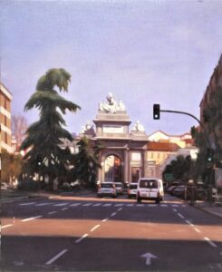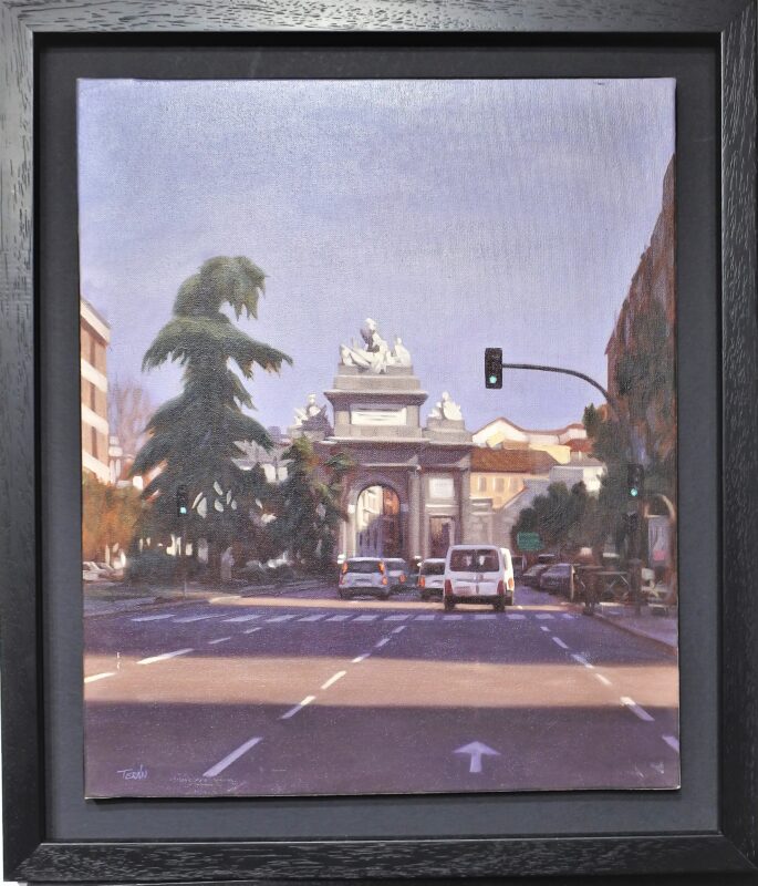 Manuel Terán, Madrid, Puerta de Toledo, pintura oleo sobre lienzo, enmarcado, pintura 55×46 cms. y marco 68×58 cms.