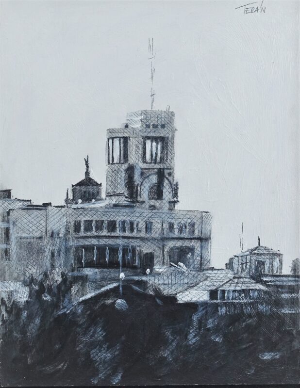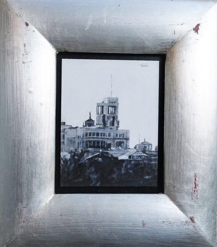 Manuel Terán, Madrid, Vista urbana, grafito y técnica mixta sobre tabla, con marco artesanal, pintura 16,50×22 cms. y marco 37×42 cms.