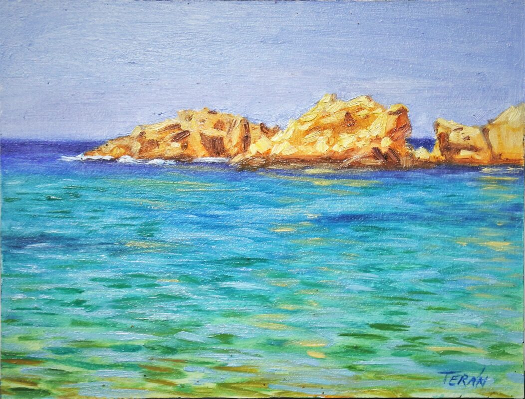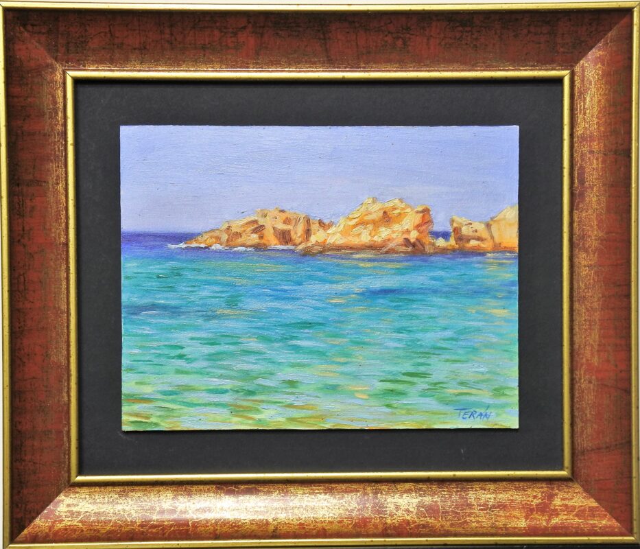 Manuel Terán, Mar verde, Isla Negra, Chile, pintura oleo sobre tabla, enmarcado, pintura 15×20 cms. y marco 28×33 cms.