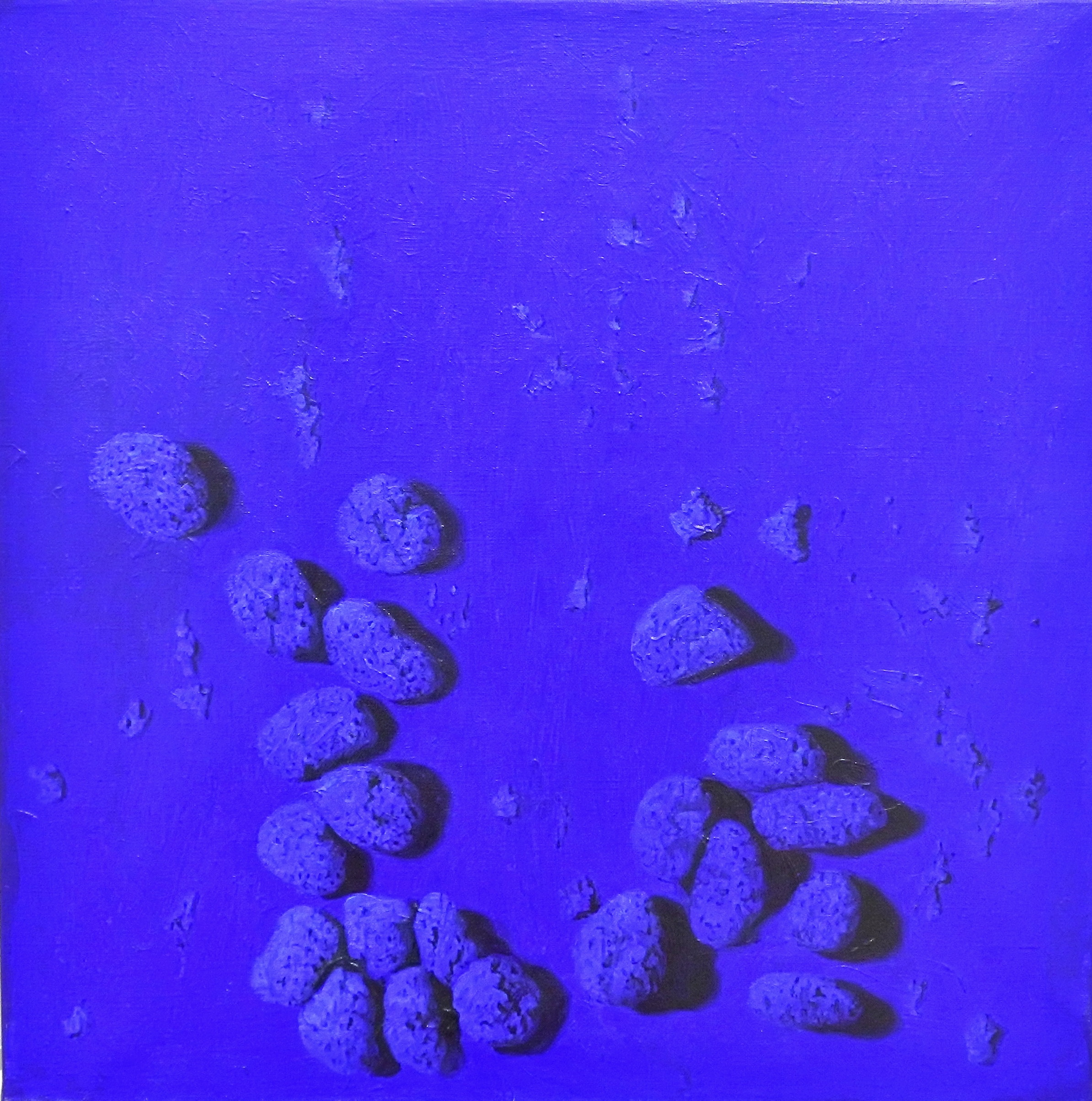 Manuel Terán, Tributo a Yves Klein, Relief eponge bleu, pintura oleo y acrílico sobre lienzo, 60×60 cms.