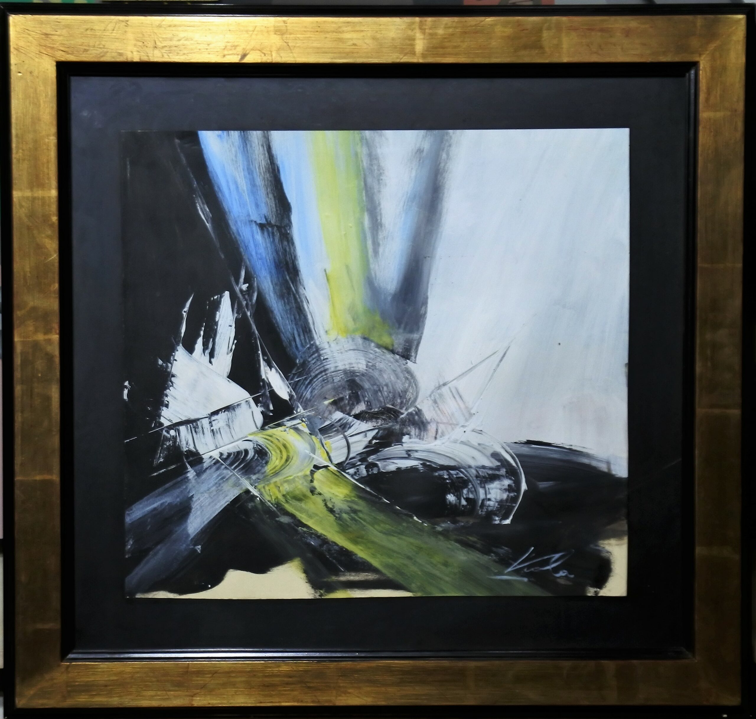 Manuel Viola 1967, Escape a la luz, pintura técnica mixta sobre cartulina, enmarcado, pintura 47×51 cms. y marco 71×76 cms. Catalogado y certificado
