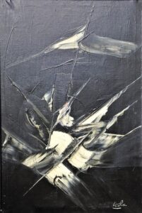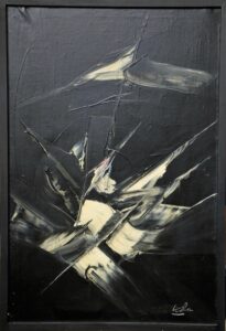 Manuel Viola 1968, Bajel de corsarios, pintura técnica mixta sobre lienzo, enmarcado, pintura 82x55cms. y marco 84×58 cms. Catalogado