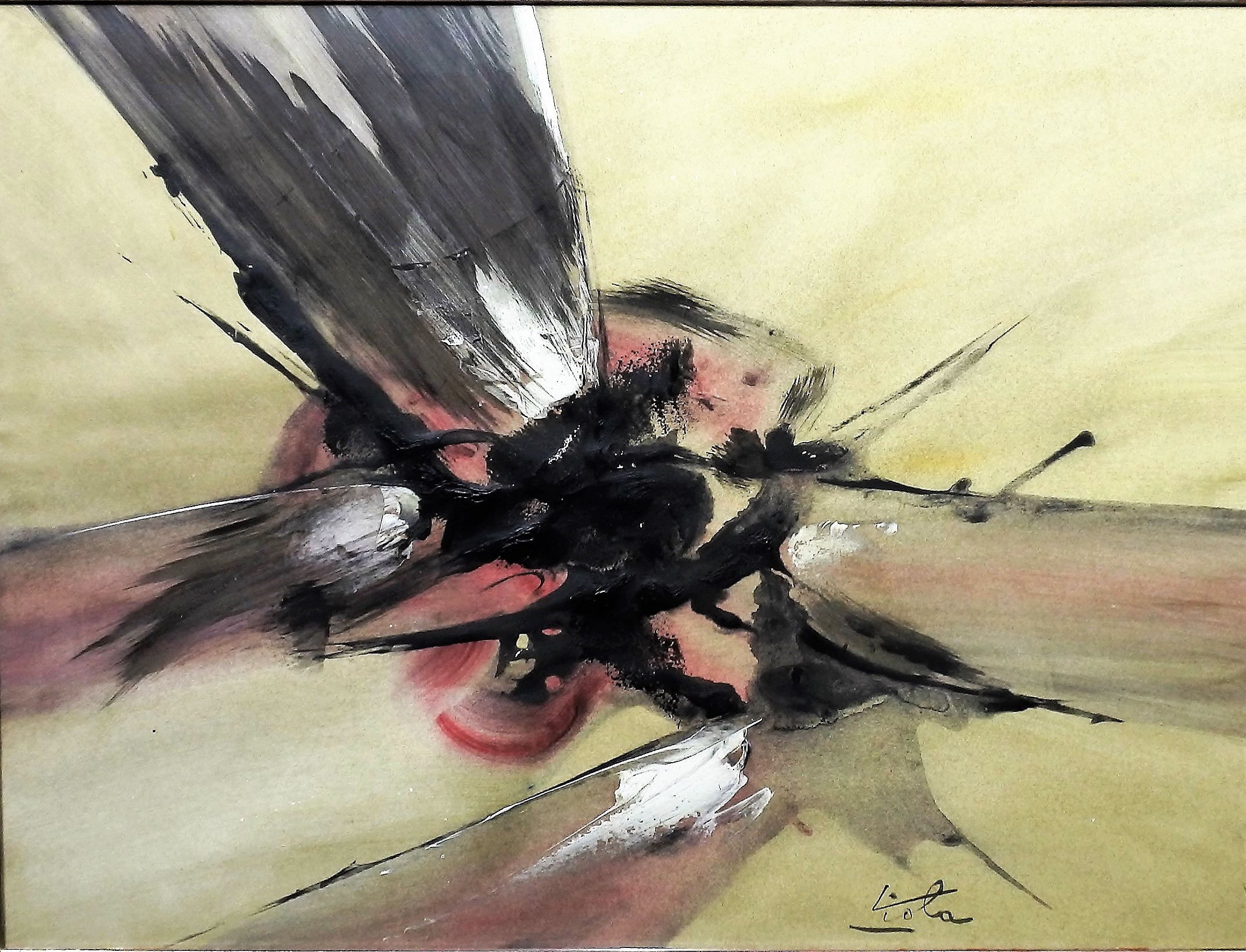 Manuel Viola 1968, Descenso al vacío, pintura técnica mixta cartulina, enmarcado, pintura 46×61 cms. y marco 66×80 cms. Catalogado