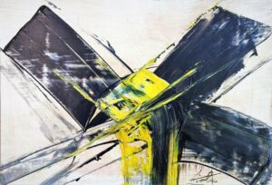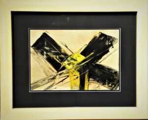 Manuel Viola, Al acecho de lo inminente, pintura técnica mixta cartulina, enmarcado, pintura 24×35 cms. y marco 47×58 cms.