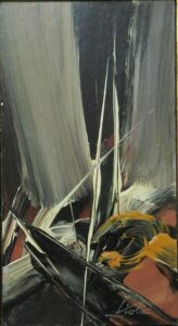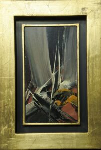 Manuel Viola, Ascenso vertical, pintura técnica mixta sobre tablex, enmarcado, pintura 26×14,50 cms. y marco 39,50×27,50 cms.