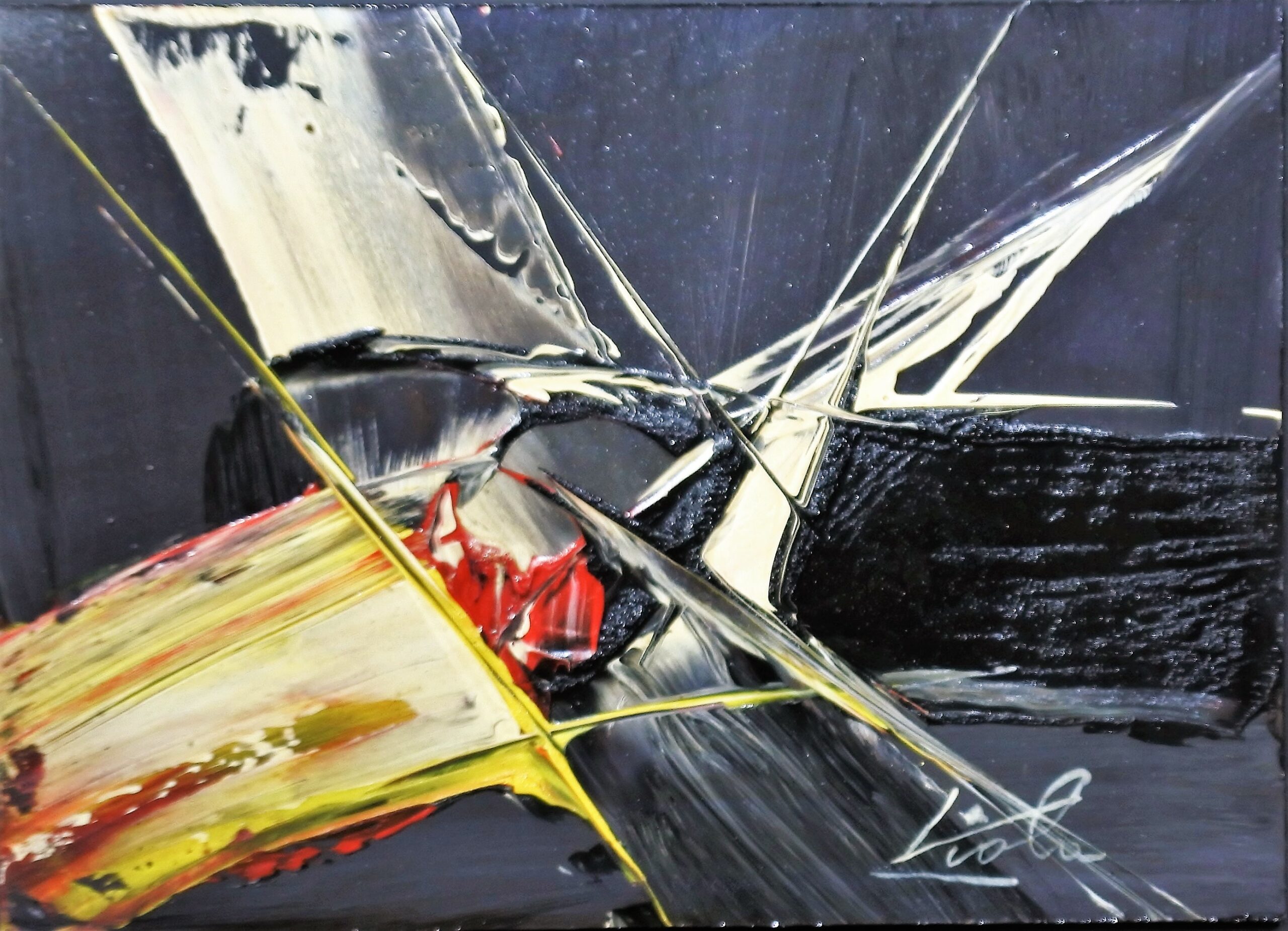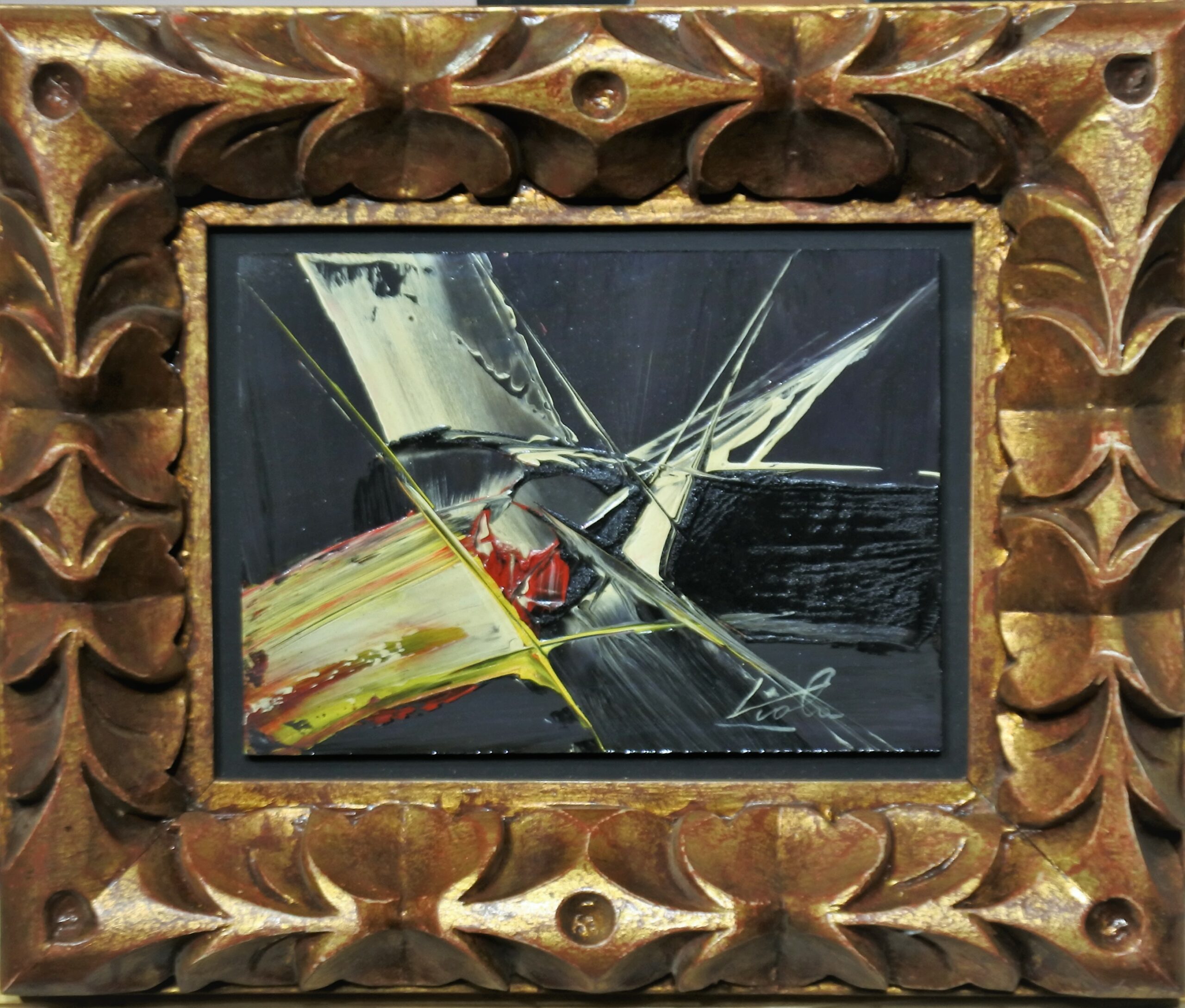 Manuel Viola, Indagación en torno al sentido, pintura técnica mixta tablex, enmarcado con marco artesanal, pintura 15×21 cms. y marco 29×36 cms. Certificado