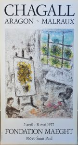 Marc Chagall, Aragón Malraux, cartel original exposición en la Fondation Maeght en 1977, 75,50×41 cms.