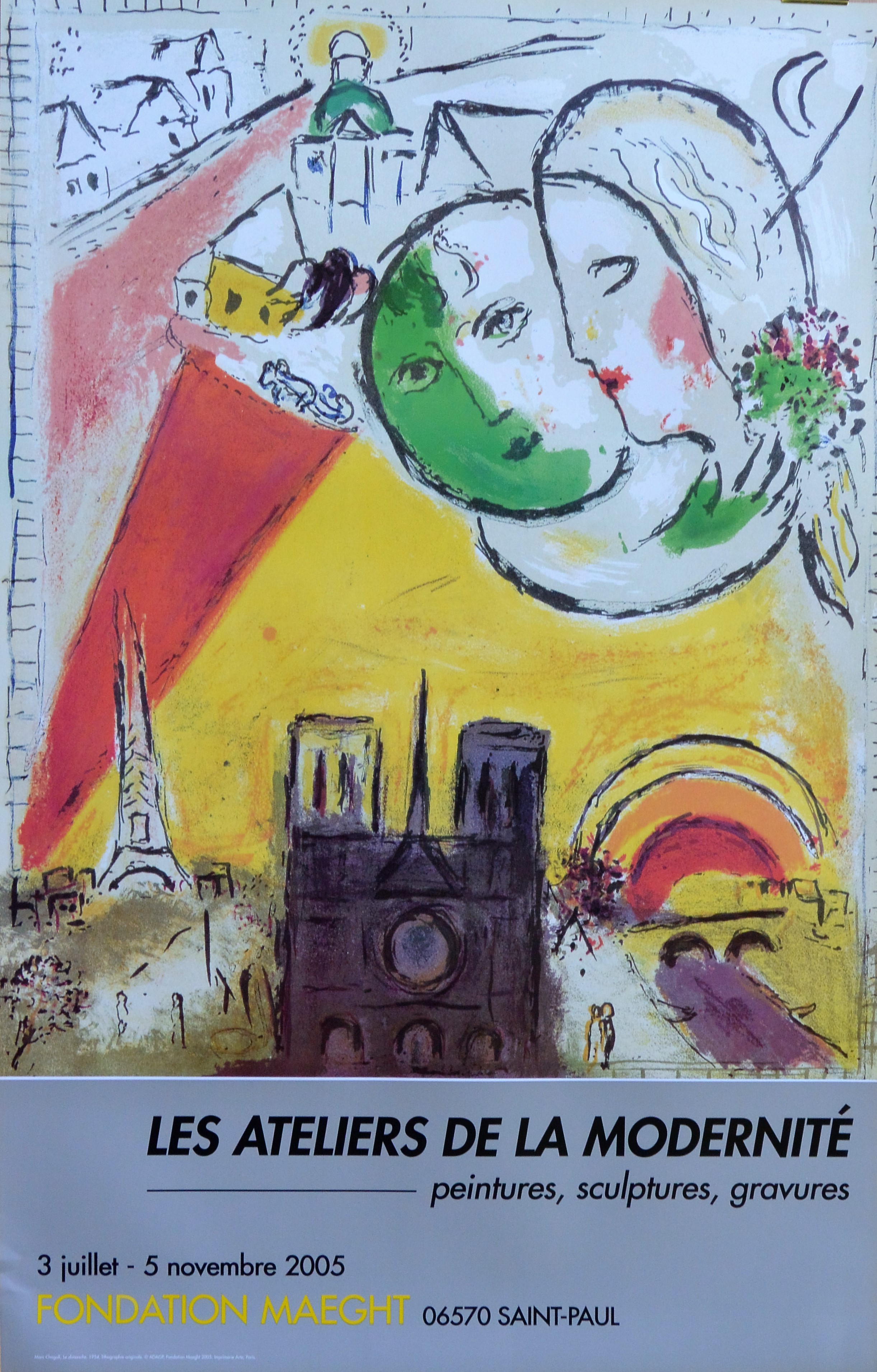 Marc Chagall, Le Dimanche, cartel original exposición Les Ateliers de la Modernité en la Fondation Maeght en 2005, 78×50 cms.