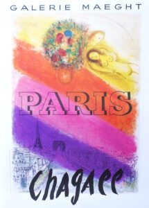 Marc Chagall - "A proximité des poètes" cartel original presentación de la obra en Galerie Maeght en 1986