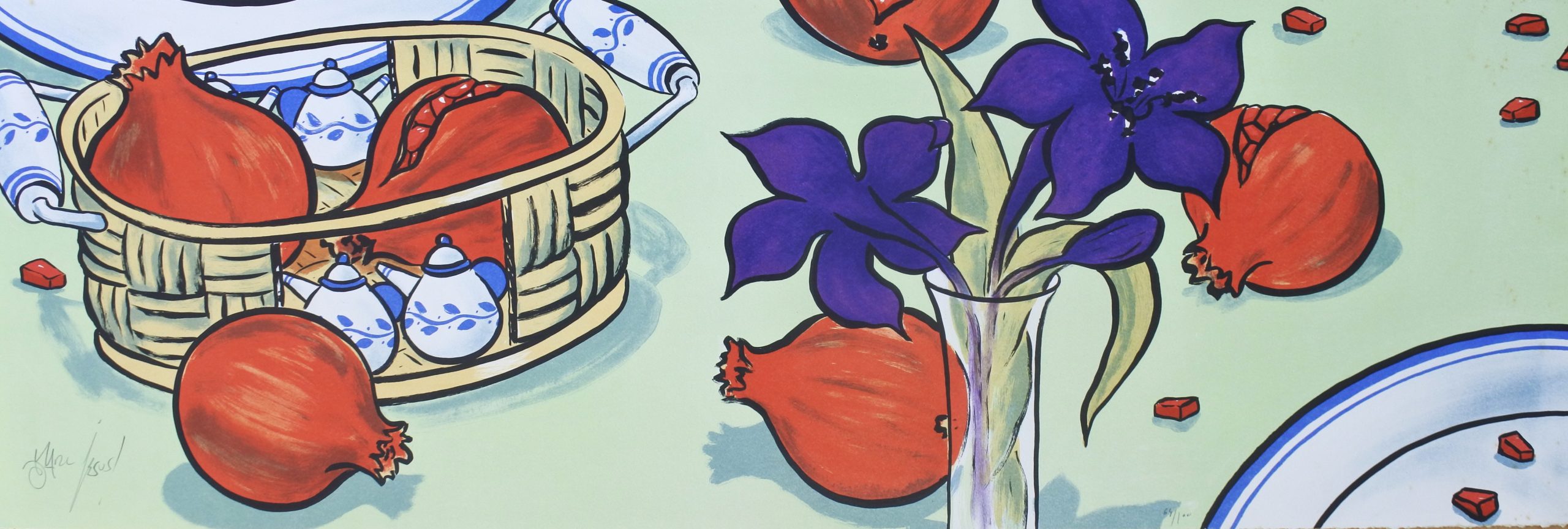 Marc Jesús, Bodegón con granadas, litografía, edición 100 ejemplares, numerado y firmado a lápiz, 32,50×96 cms.