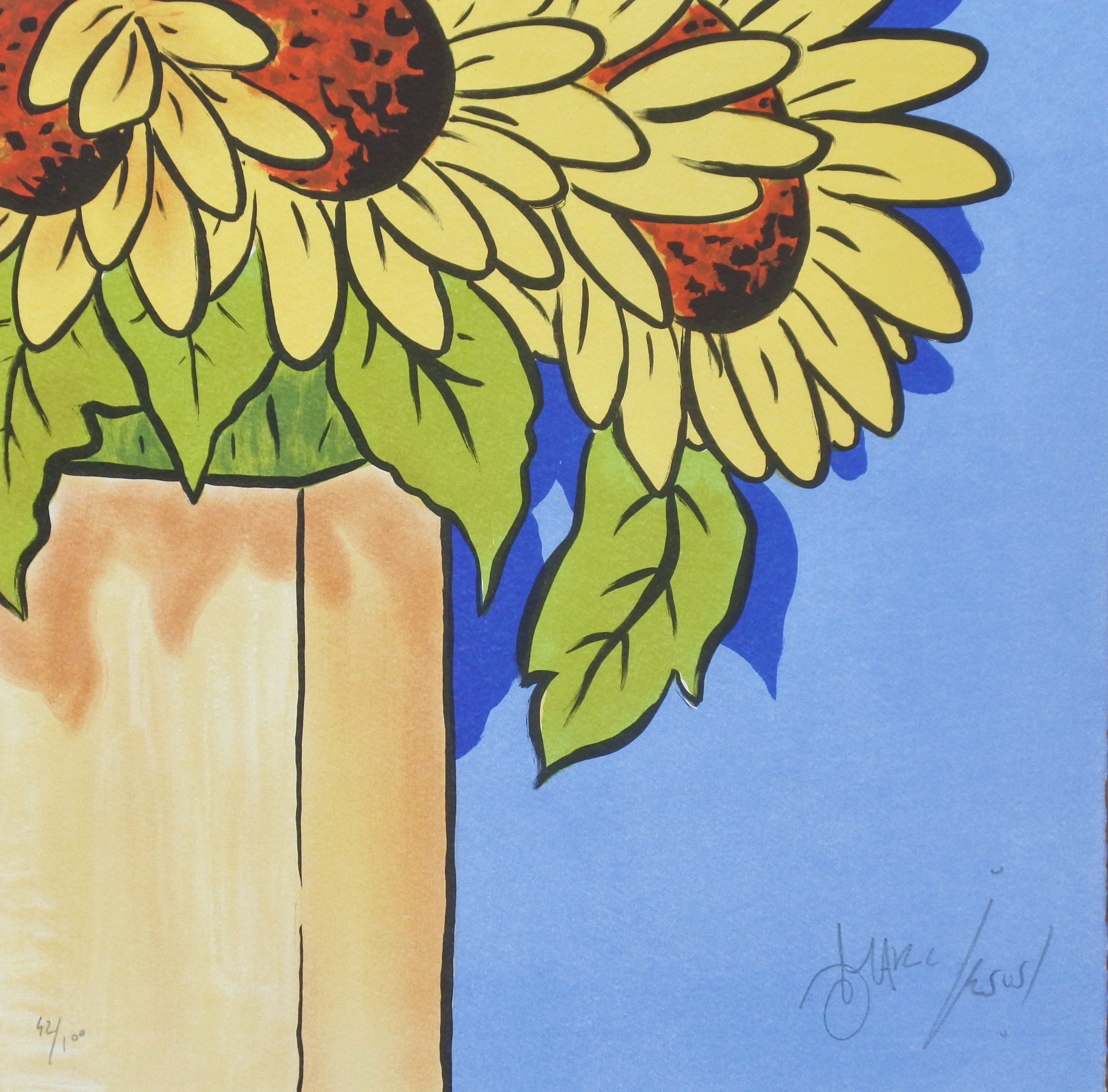 Marc Jesús, Flores amarillas, litografía, edición 100 ejemplares, numerado y firmado a lápiz, 31×31 cms.
