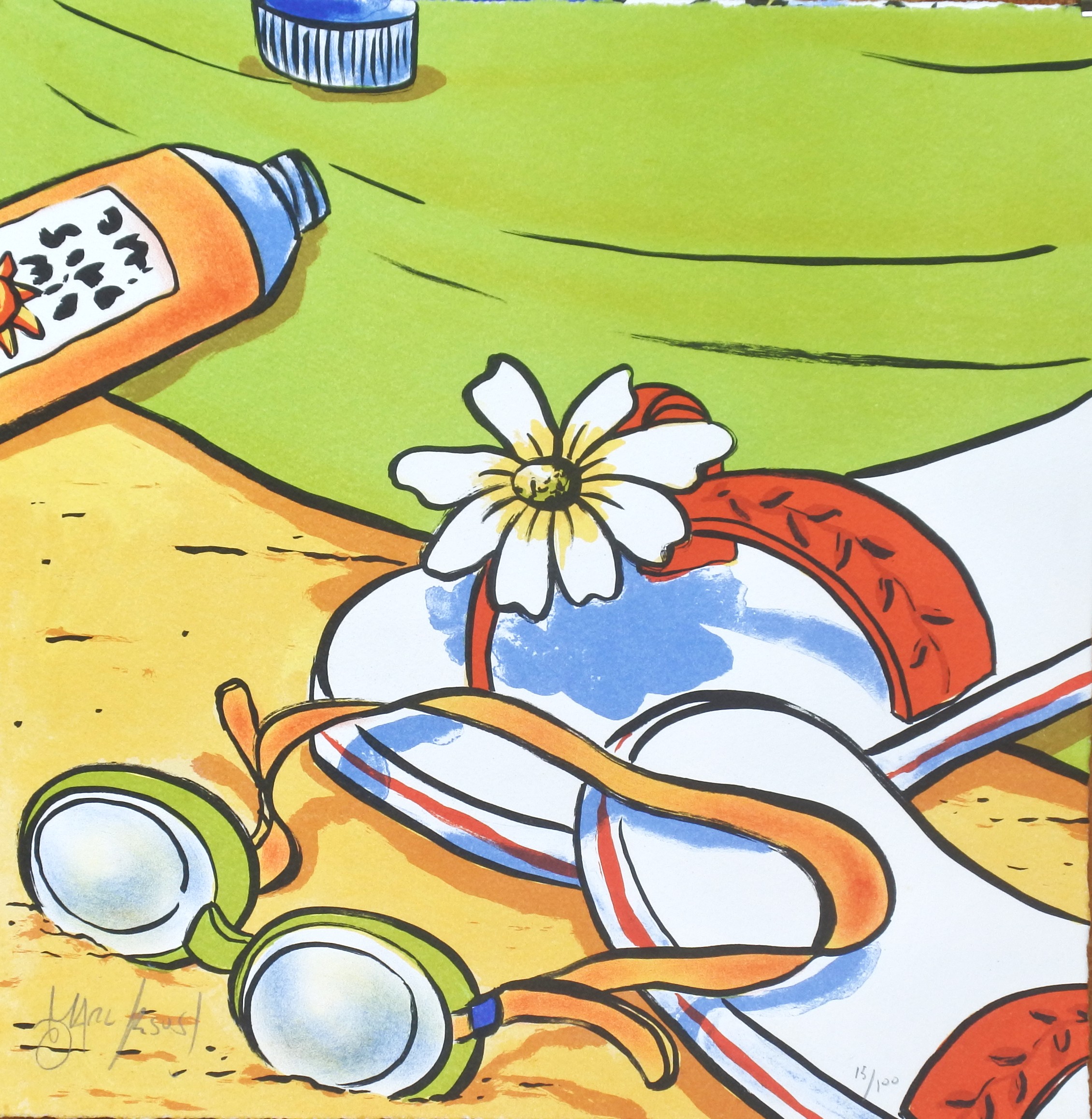 Marc Jesús, La playa, litografía, edición 100 ejemplares, numerado y firmado a lápiz, 31×31 cms.