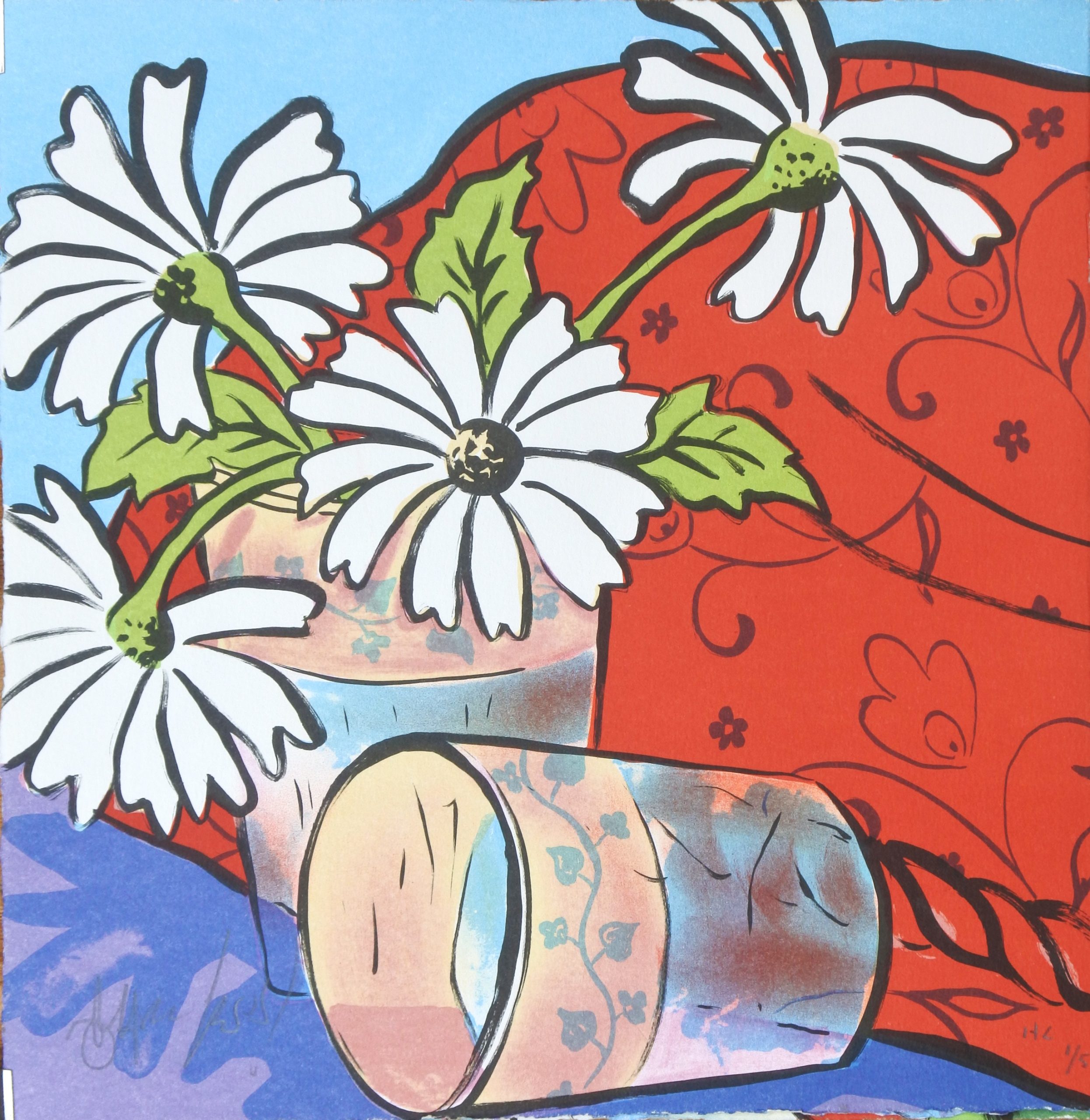 Marc Jesús, Vaso y flores, litografía, edición 100 ejemplares, numerado y firmado a lápiz, 28×28 cms.