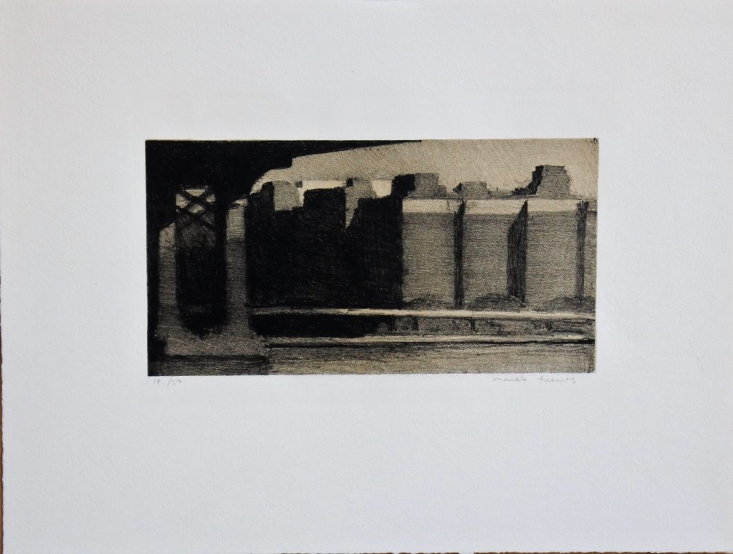 Marcelo Fuentes, Bajo el puente, litografía, edición 50 ejemplares, numerado y firmado a lápiz, plancha 12,50×24 cms. y papel 30×39,50 cms.