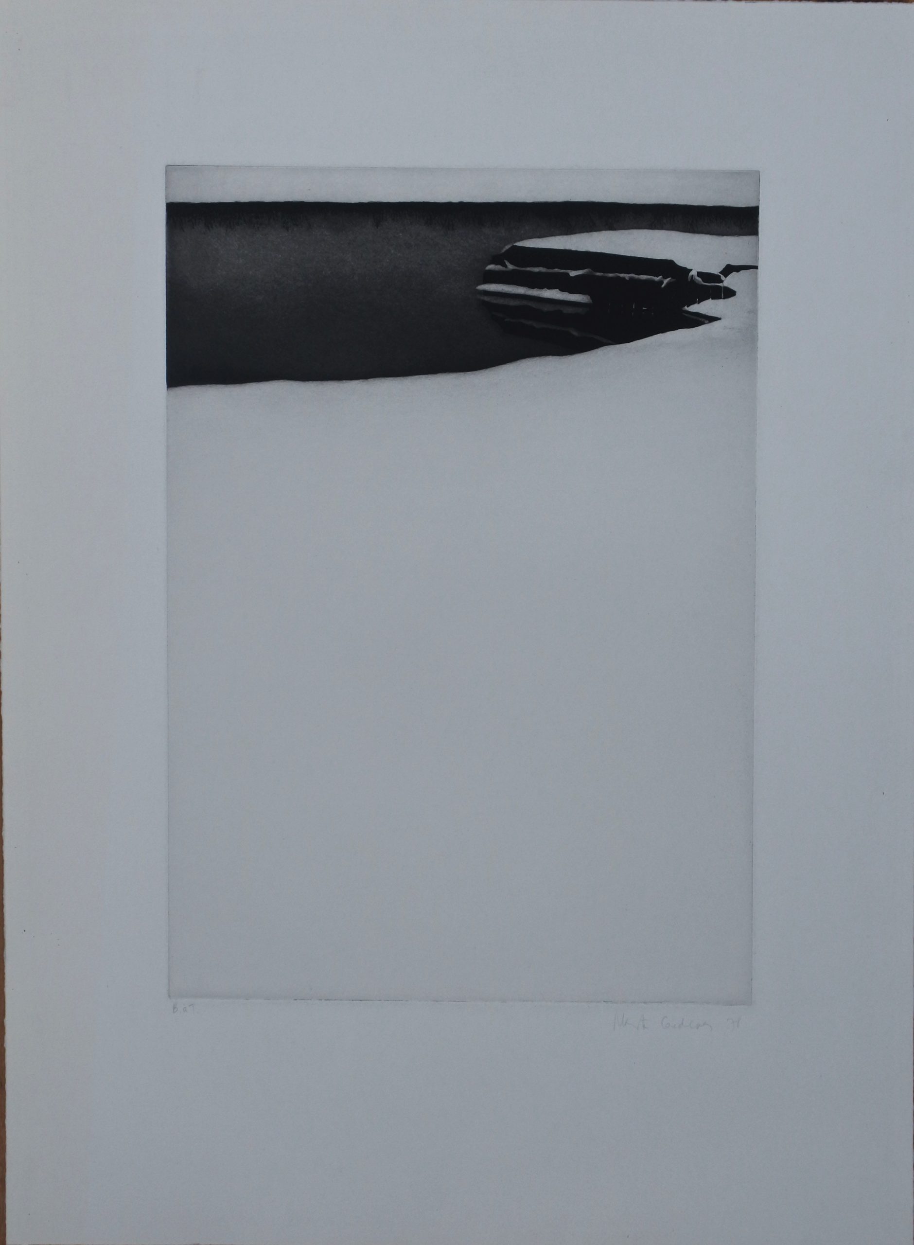 Marta Cárdenas, Paisaje de playa, grabado aguafuerte, numerado BAT (bon a tirer) y firmado a lápiz, plancha 47×33 cms. y papel 70×51 cms.