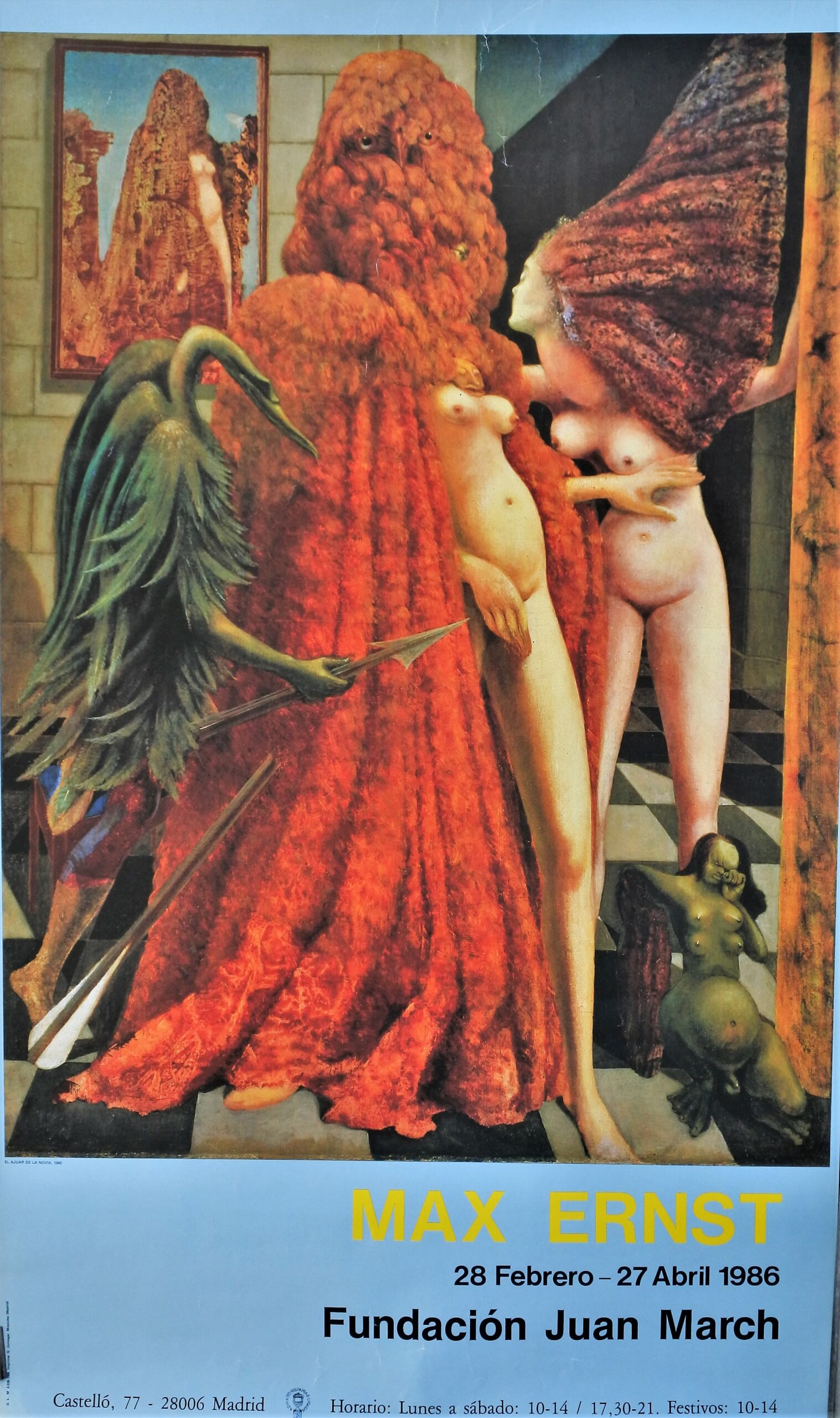 Max Ernst, El vestido de la novia, cartel original exposición en la Fundación Juan March en 1986, 76×45 cms.