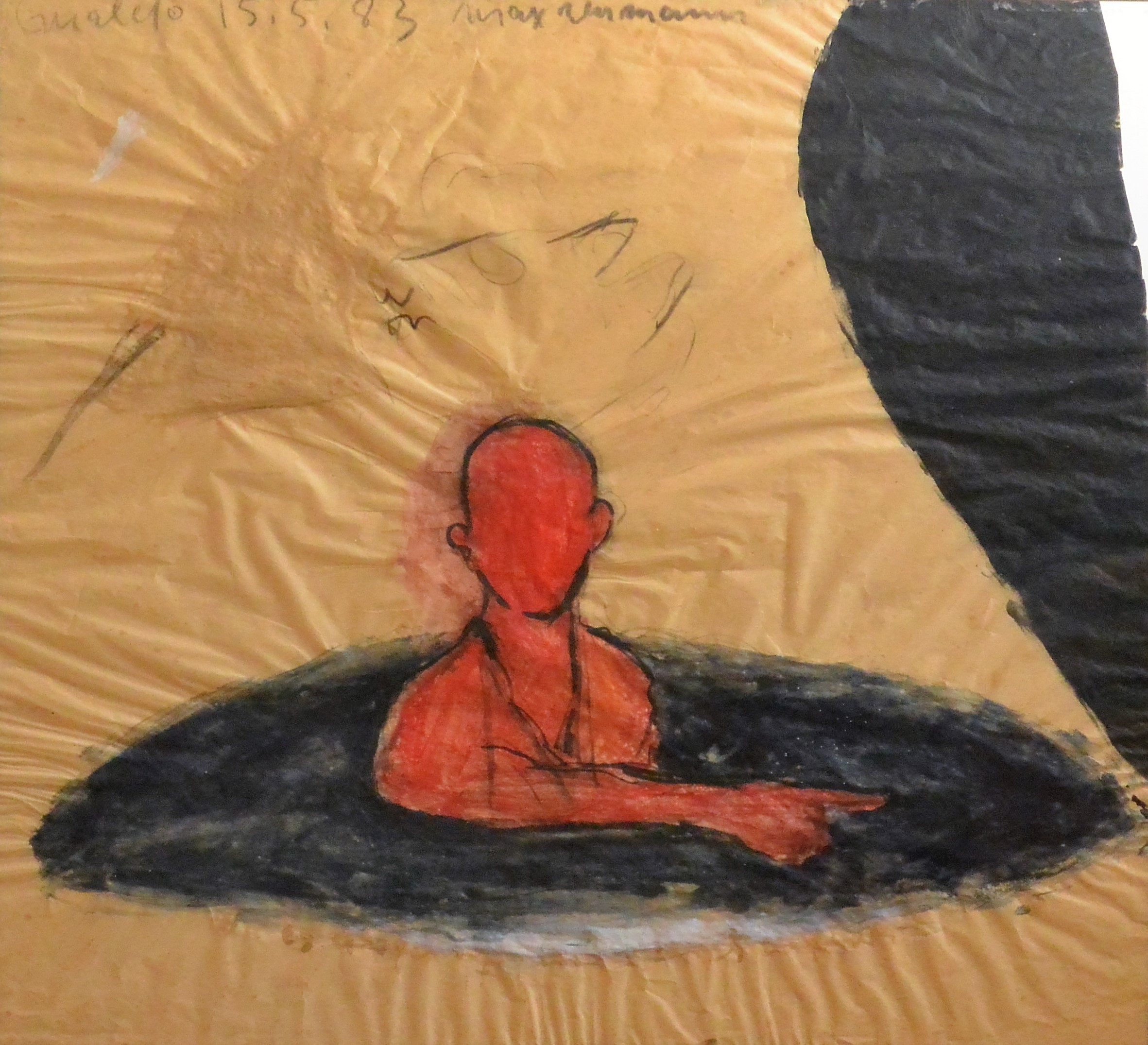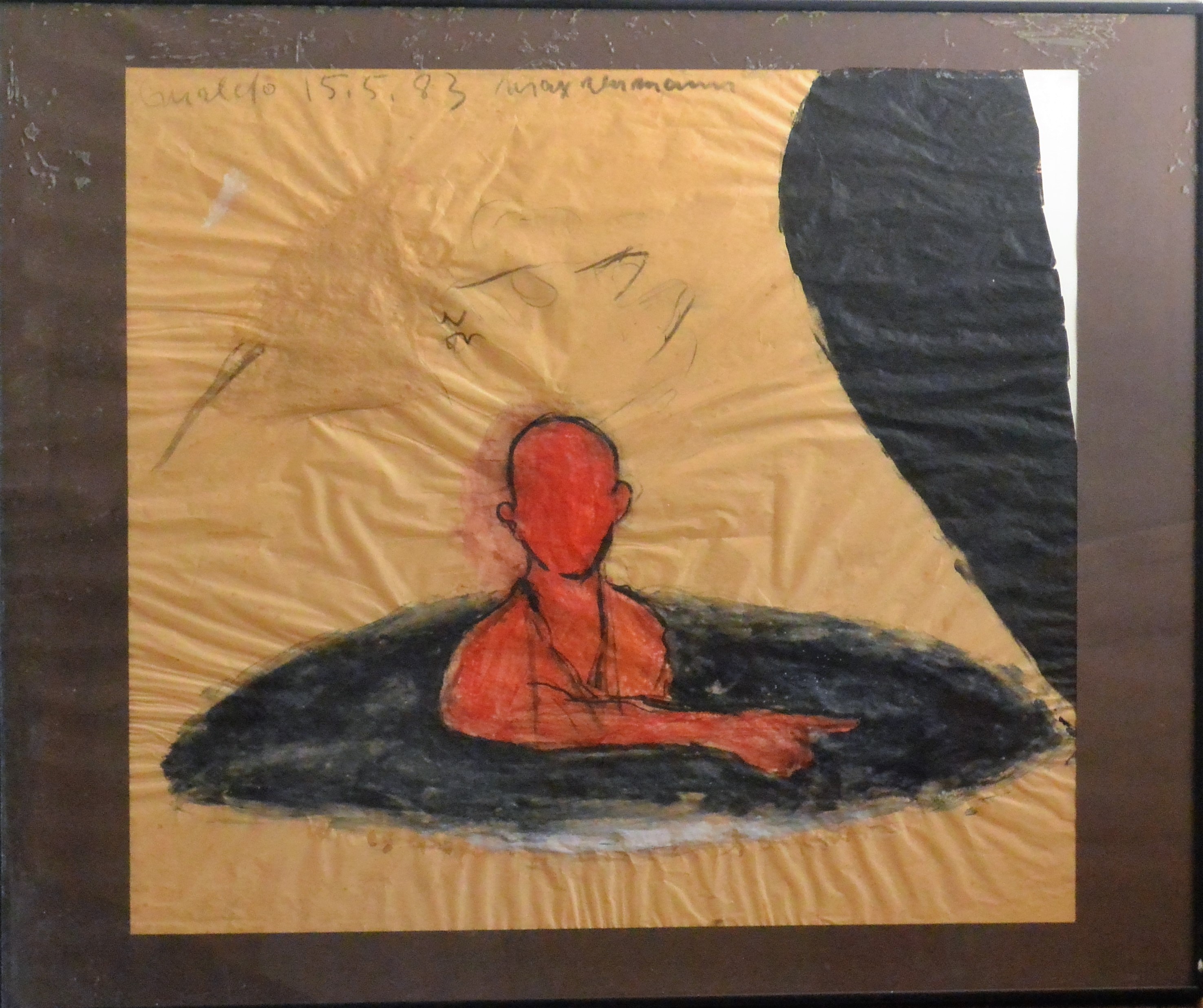 Max Neuman 1983, Hombre hundido, técnica mixta papel, enmarcado, obra 51×57 cms. y marco 60×73 cms. Marco incluido