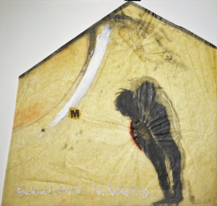 Max Neumann, Bahnlienie in watts, dibujo original técnica mixta papel, enmarcado, dibujo 36×36 cms. (irregular) y marco 47×48,50 cms.