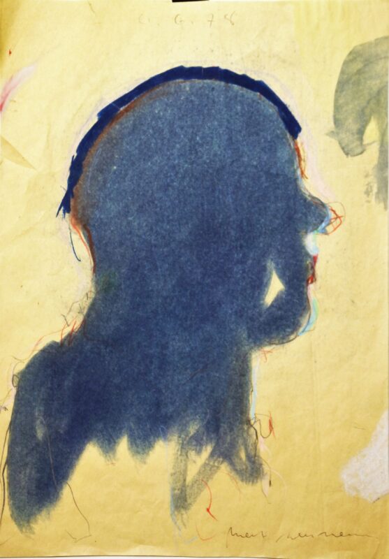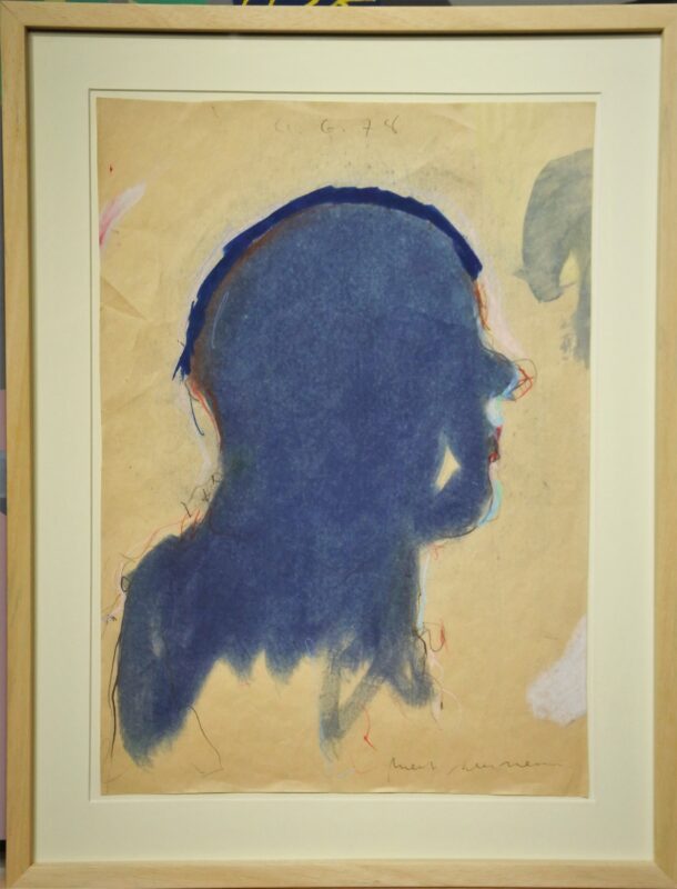 Max Neumann, Blauer Mann im Profil, dibujo técnica mixta papel, enmarcado, dibujo 42×29,50 cms. y marco 53×40,50 cms.