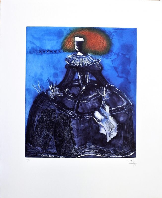 Mercedes Gomez-Pablos, Mariana de Austria, grabado aguafuerte, edición 75 ejemplares, numerado, datado 98 y firmado a lápiz, plancha 53x45cms. y papel 82×66 cms.