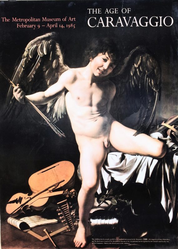 Michelangelo Caravaggio, Amor Vinci Omnia, cartel original exposición en el Metropolitan Museum New York en 1.985, 107×76 cms.