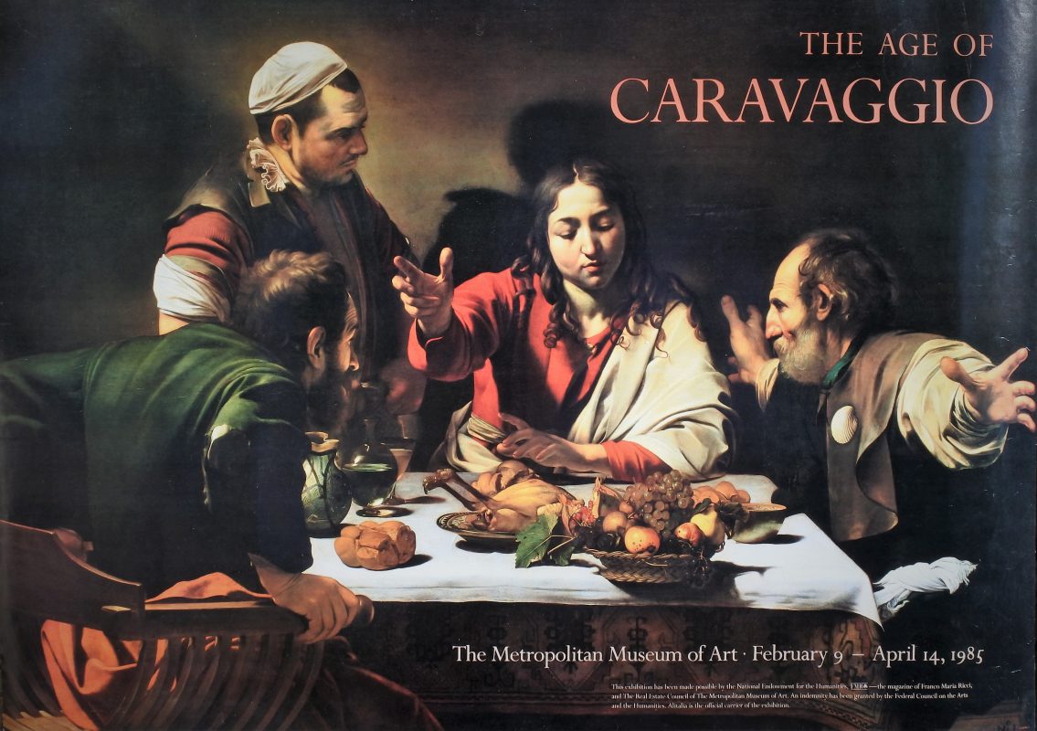 Michelangelo Caravaggio, The supper at Emaus, cartel original exposición en el Metropolitan Museum New York en 1.985 76×108 cms.