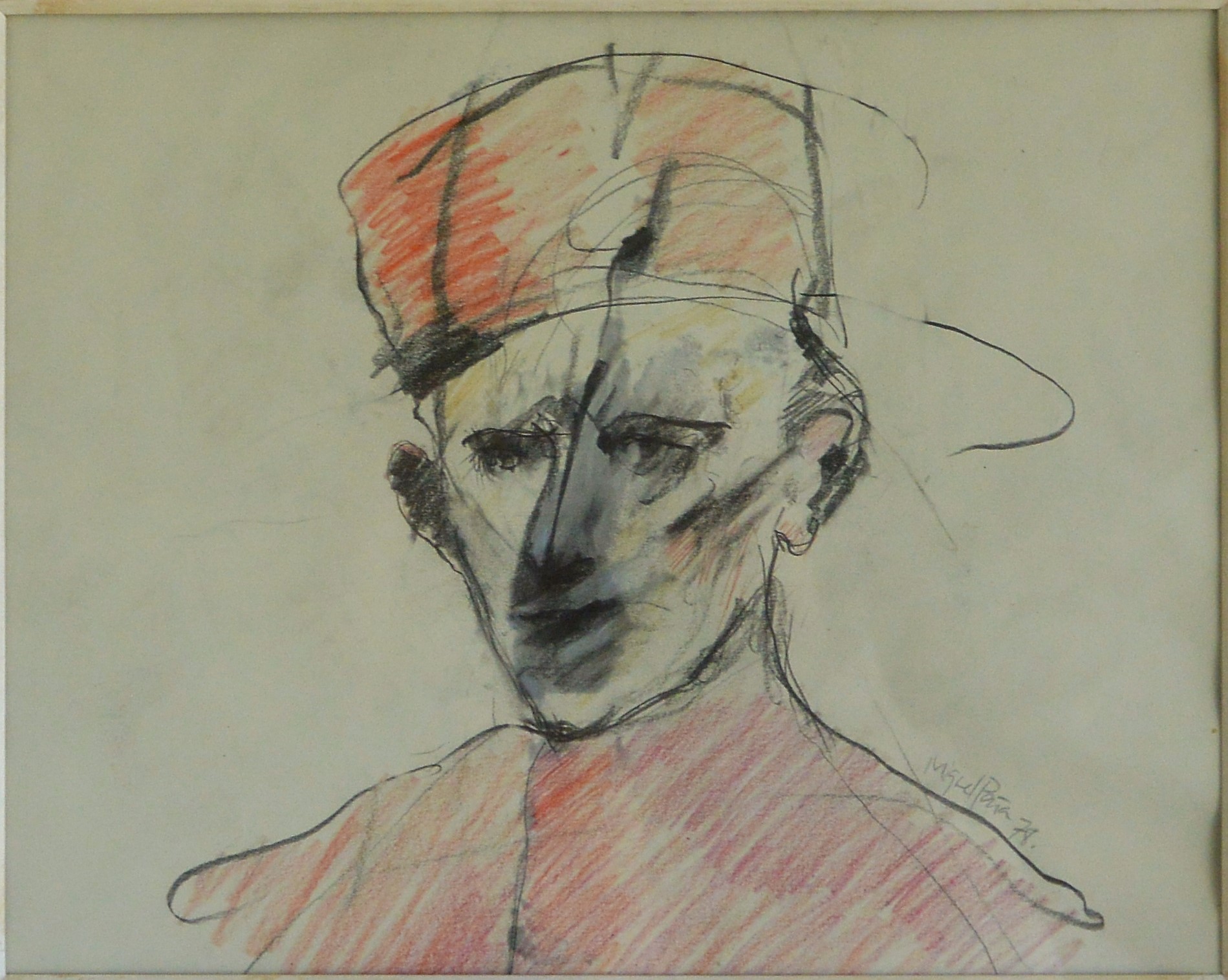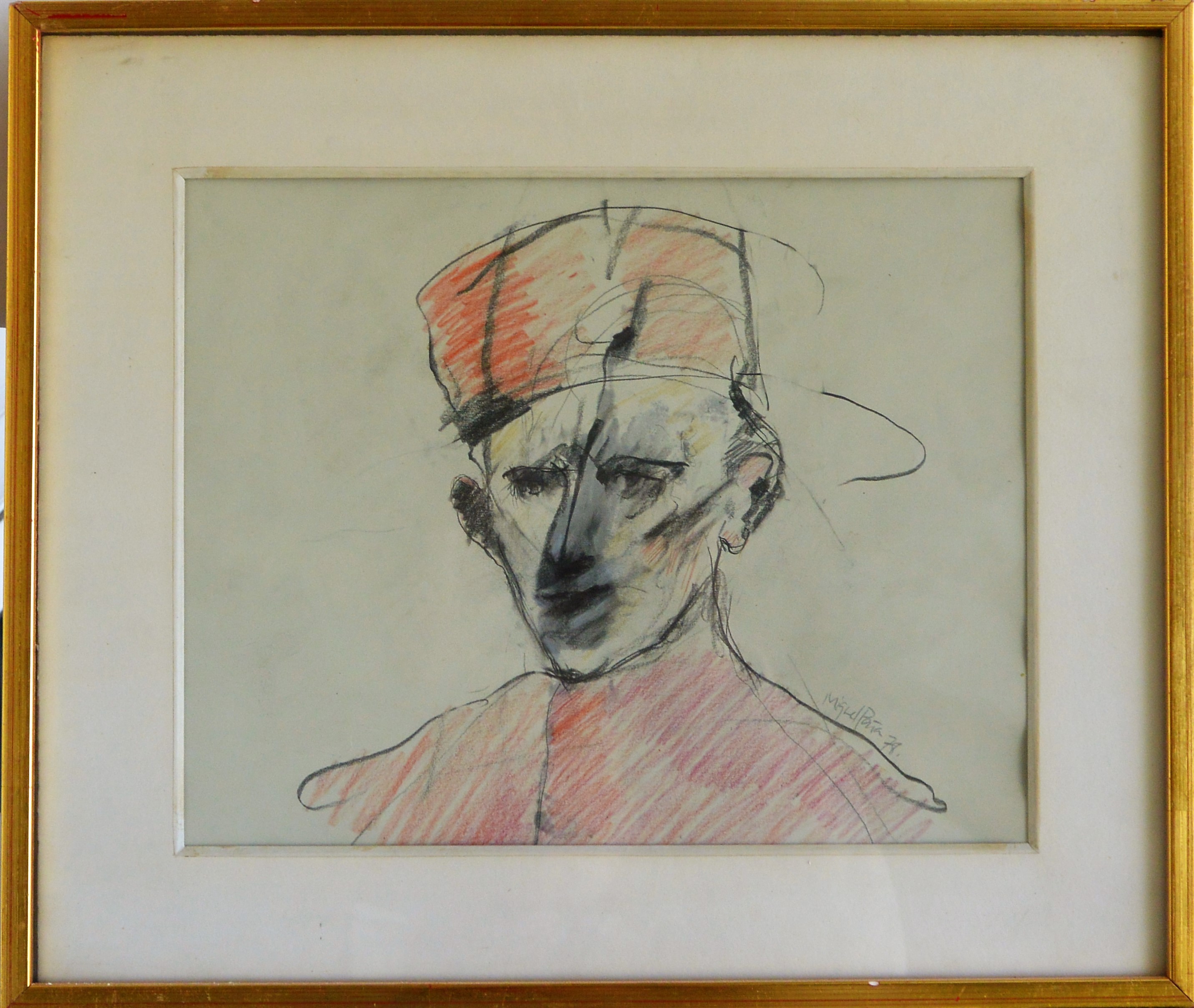 Miguel Peña 1978, Personaje eclesiástico, dibujo técnica mixta papel, enmarcado, dibujo 22,50×29 cms. y marco 34,50×40,50 cms. Marco incluido
