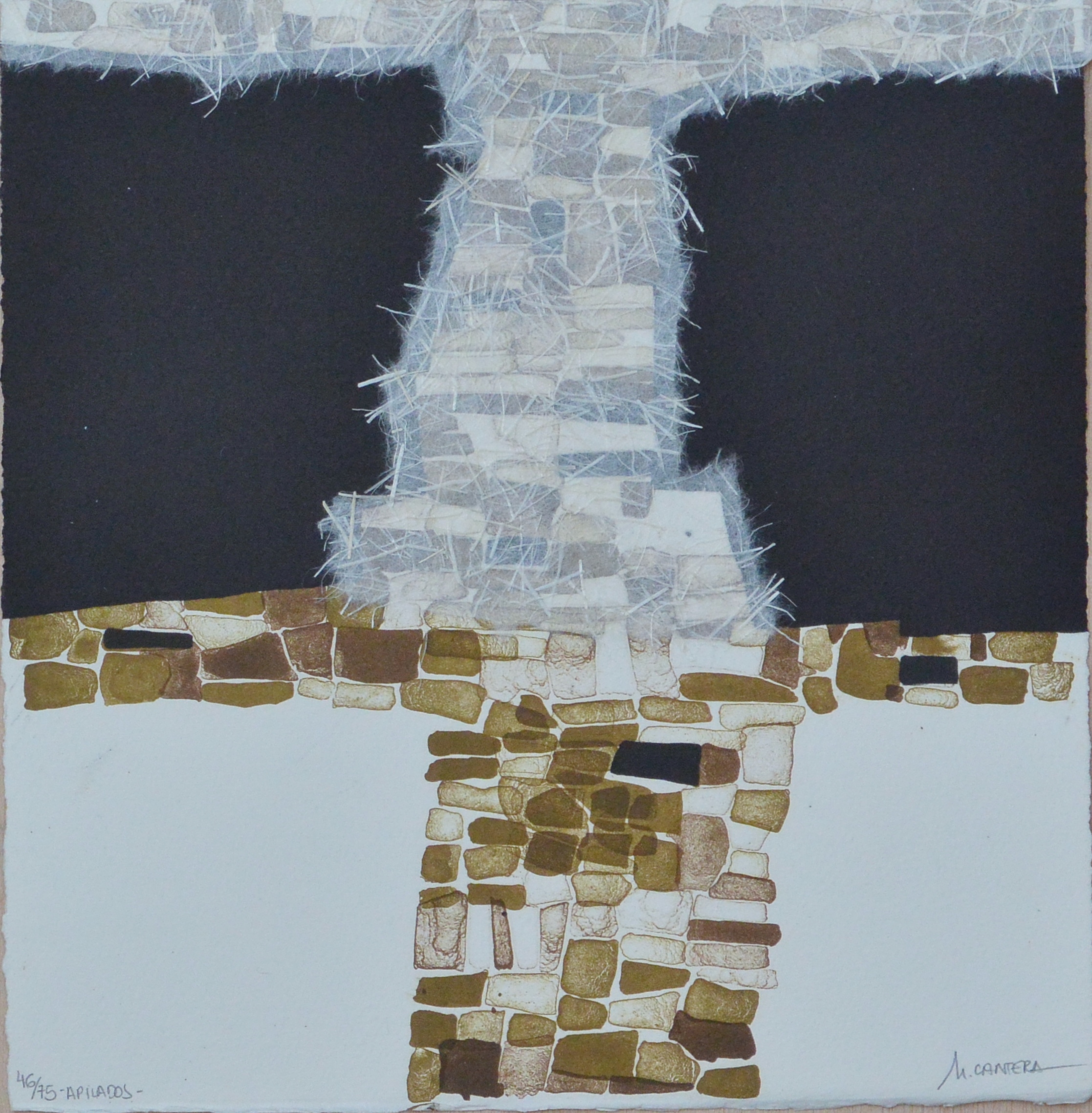 Miriam Cantera, Apilados IV, litografía y papel chine-collé, edición de 75 ejemplares, numerado y firmado a lápiz, 25×25 cms.