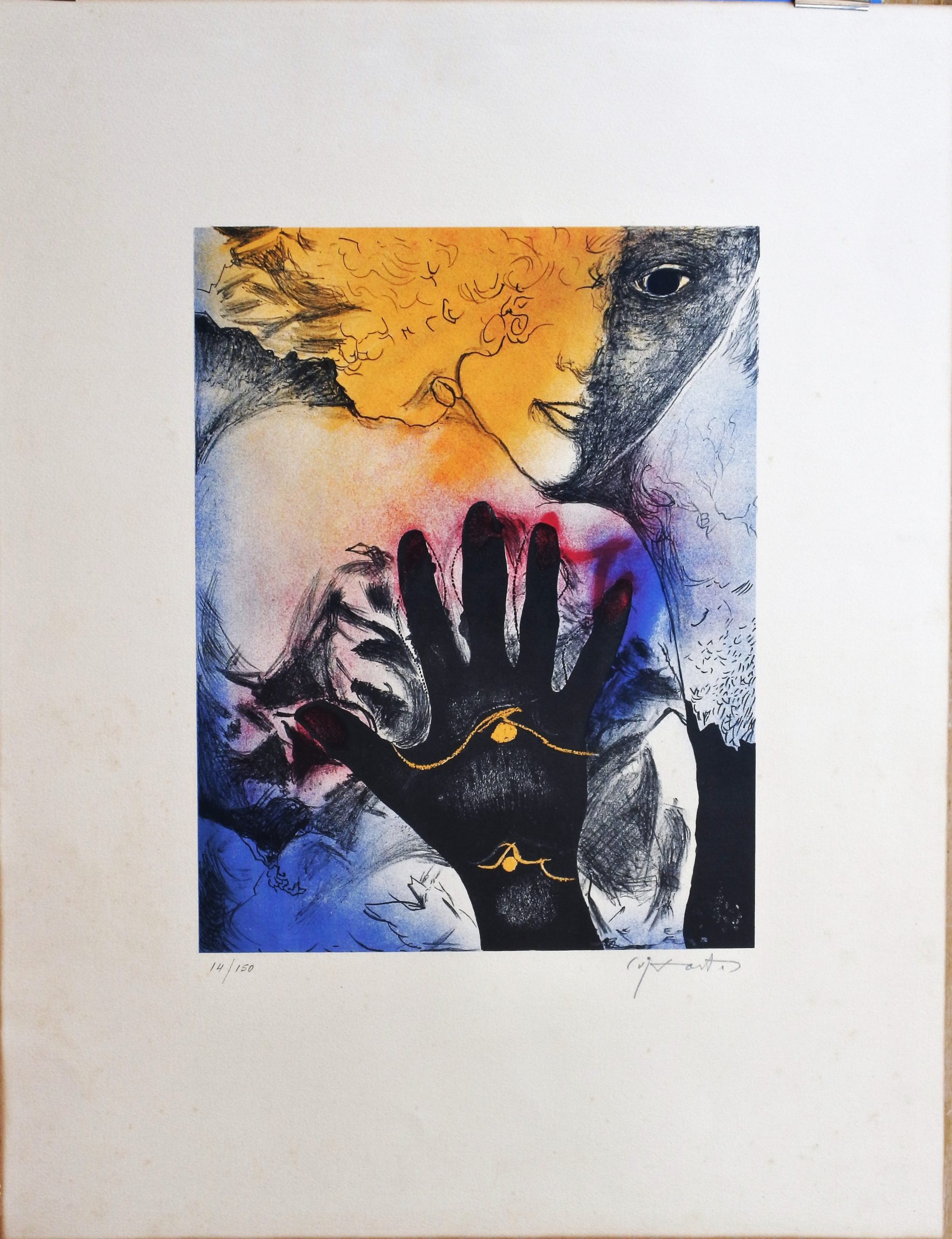 Modest Cuixart, Figura y mano negra, litografía, edición 150 ejemplares, numerado y firmado a lápiz, 65×50 cms.