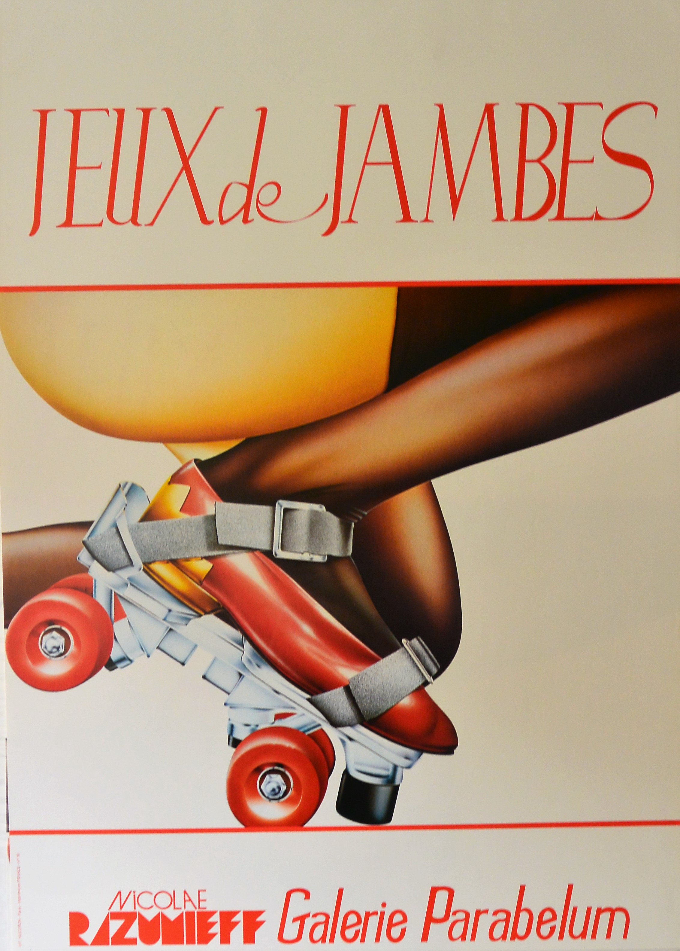 Nicolae Razumieff, Jeux des Jambes, Cartel original exposición Galerie Parabelum, 85×60 cms.