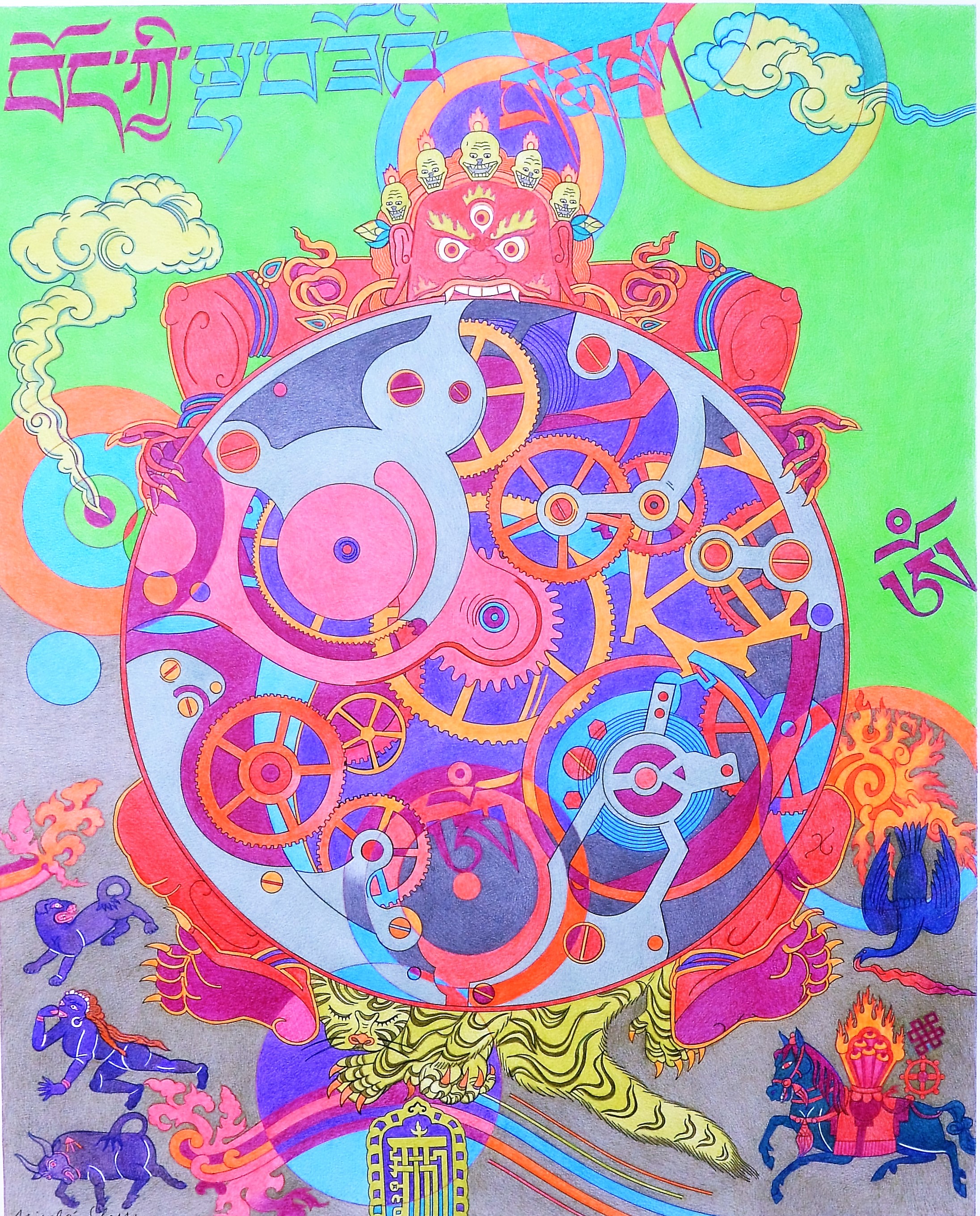 Nicolás Gless, La rueda del tiempo, dibujo original, técnica mixta, 62×50 cms.