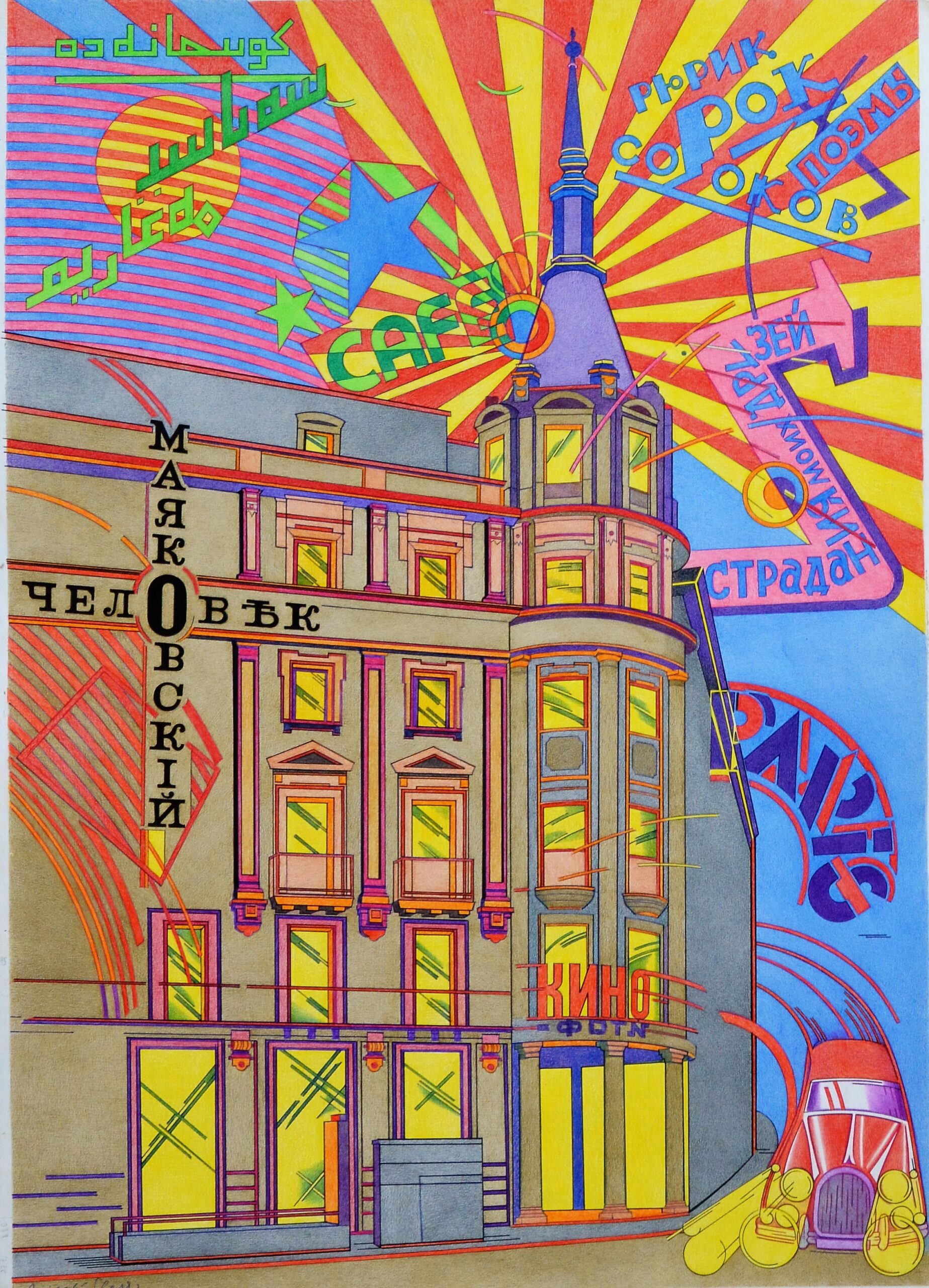 Nicolás Gless, Paisaje urbano, dibujo original técnica mixta, 71×51 cms.