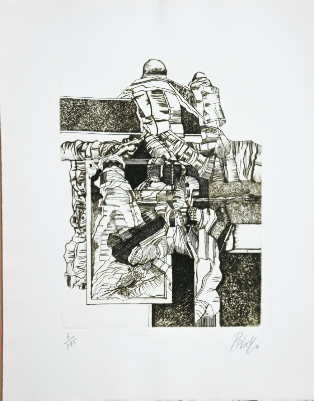 Orlando Pelayo, Coplas a la muerte de su padre VI, grabado punta seca, edición 195 ejemplares, numerado y firmado a lápiz, plancha 33×24,50 cms. y papel 49×38 cms.