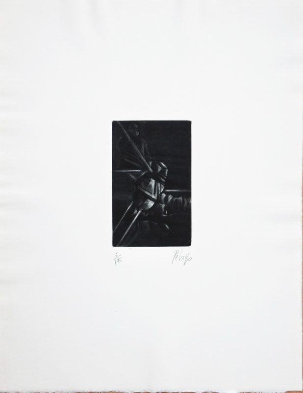 Orlando Pelayo, Coplas a la muerte de su padre XII, grabado mezzo tinta (Manera negra), edición 195 ej, numerado y firmado a lápiz, plancha 15,50×10 cms. y papel 49×37,50 cms.
