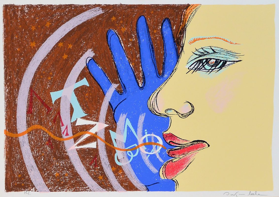 Ouka Lele, Perfil y mano azul, Serigrafía, numerada h.c. y firmada a lápiz, 33 x 47 cms.