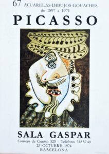 Pablo Picasso – «67 acuarelas, dibujos, gouaches» cartel original exposición de Pablo Picasso en la sala Gaspar Barcelona en 1974