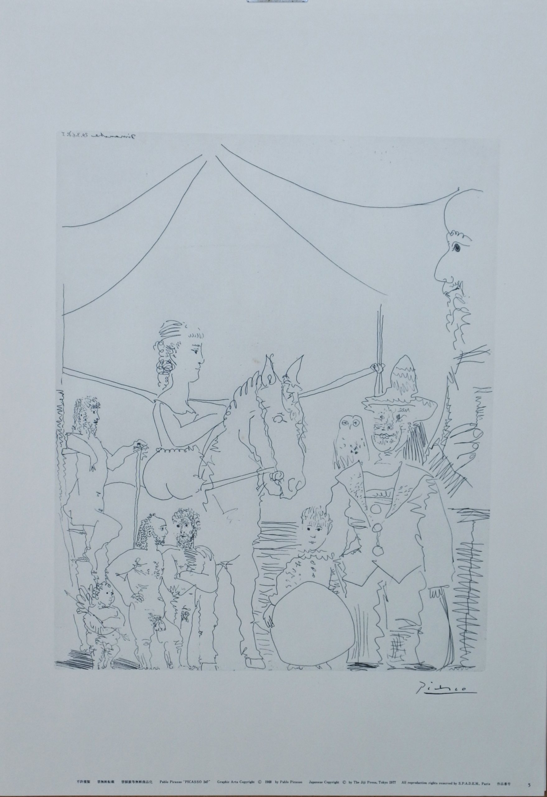 Pablo Picasso – «At the Circus Group with Female Rider and Clown» suite 347 grabados # 5, reproducción facsimil, impreso en Japón
