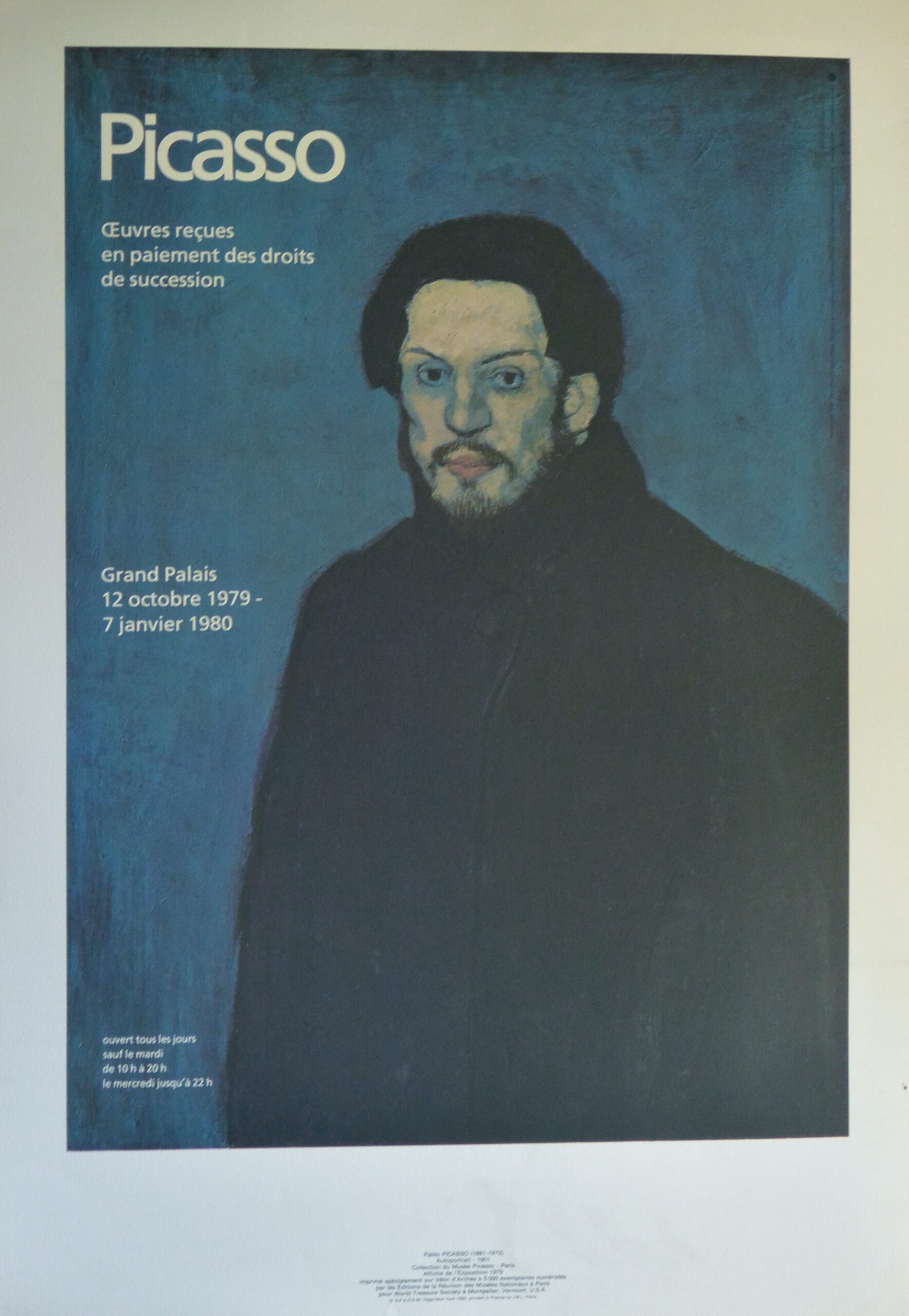Pablo Picasso. «Autorretrato azul». Cartel original exposición en el Grand Palais París. Edición especial sobre papel Velin de Arches 76×52 cms.