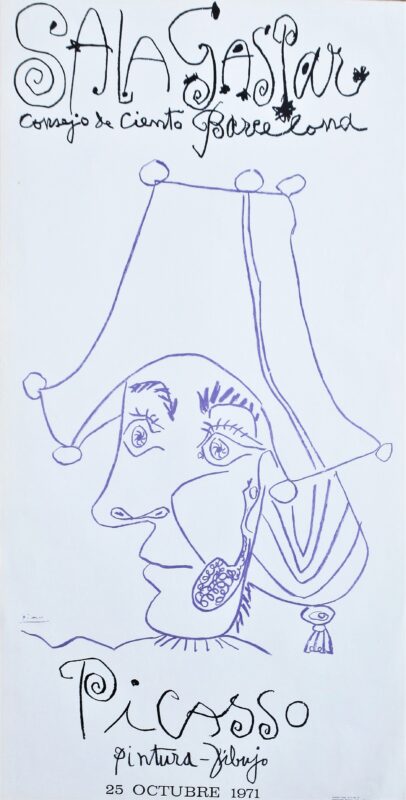 Pablo Picasso, Cabeza de arlequin, Cartel original serie limitada y firmada en plancha, exposición en Sala Gaspar Barcelona en 1971, 101×52 cms.