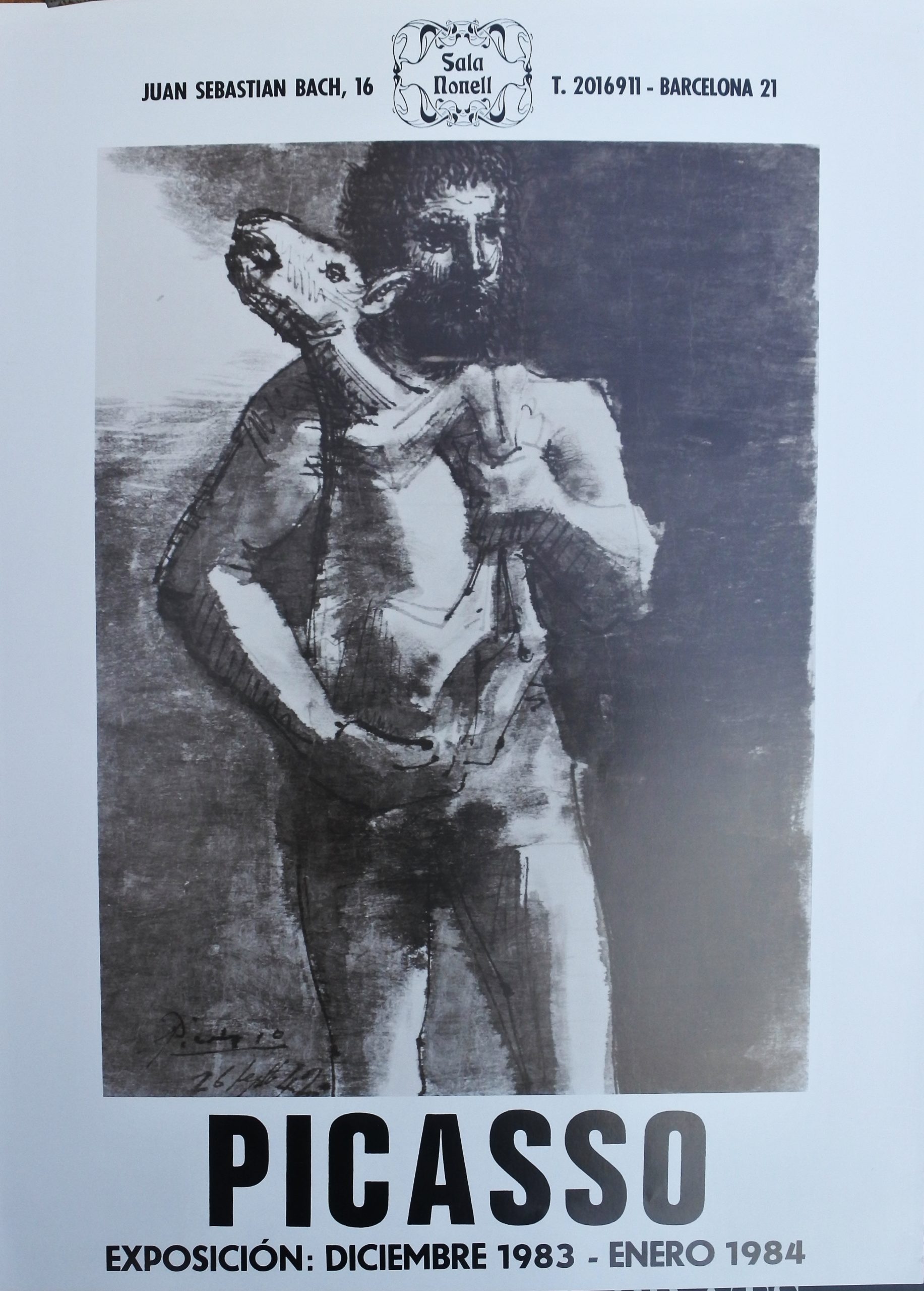 Pablo Picasso, Joven con cordero, cartel original exposición en la Sala Nonell de Barcelona en 1983-84, 70×51 cms.