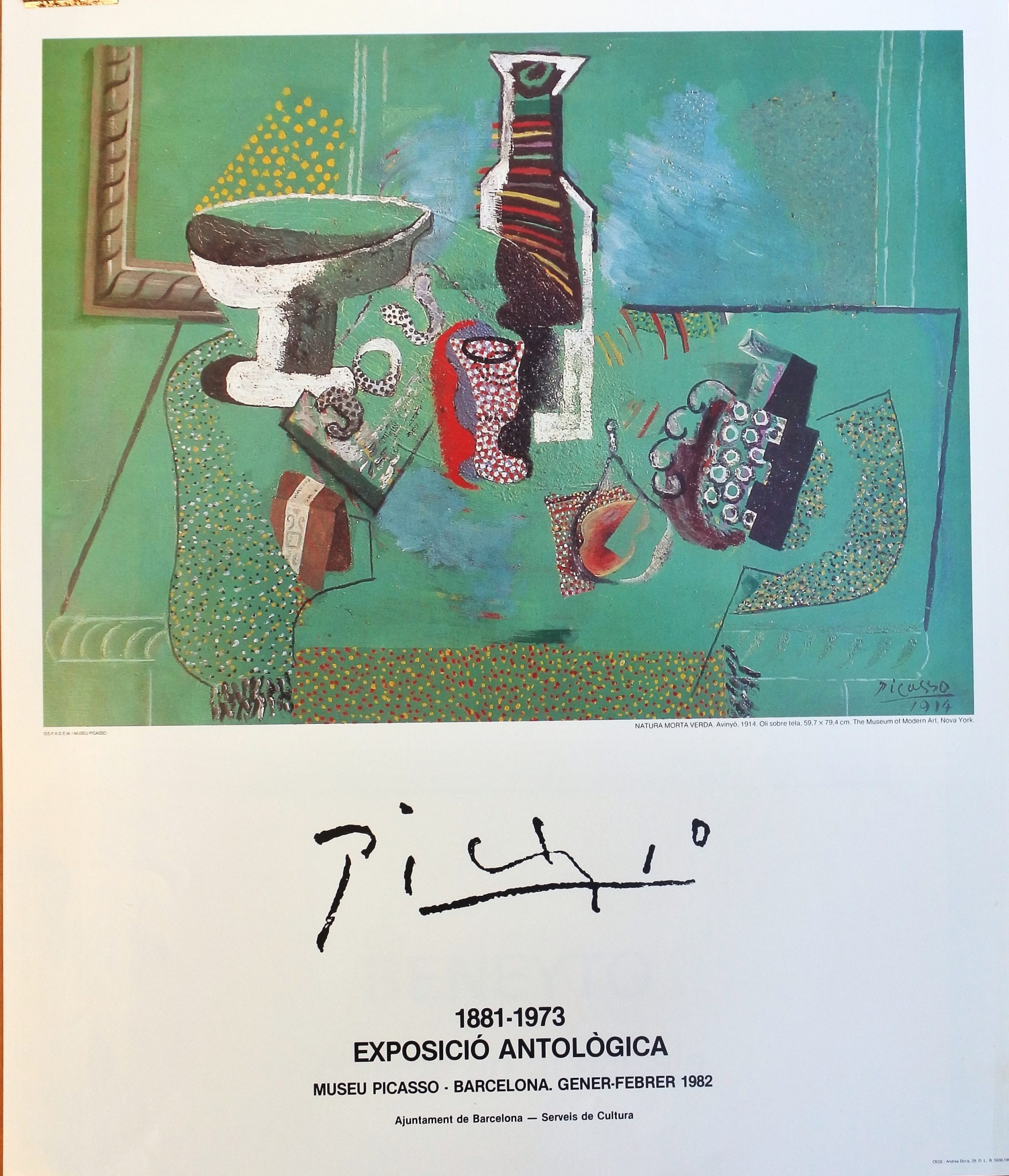 Pablo Picasso, Green still life, cartel original exposición antológica en Museu Picasso Barcelona en 1982, 48×41 cms.